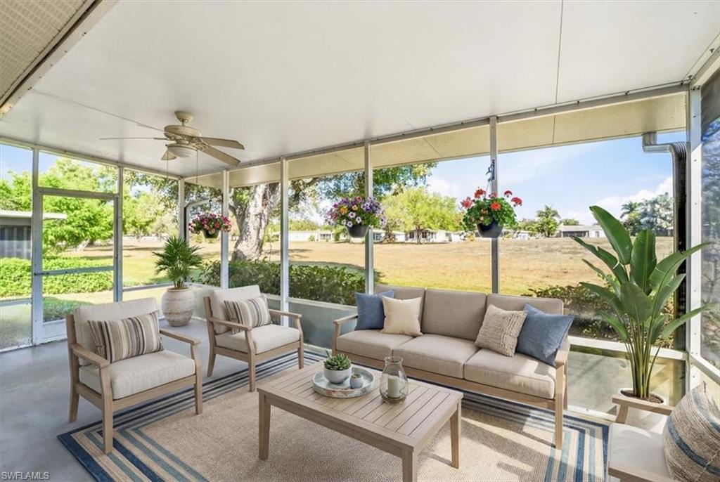 This spacious 3-bedroom plus den, 2-bath residence offers the flexibility today’s buyers are looking for. The additional den provides the ideal space for a home office, hobby room, or cozy reading lounge — tailored to fit your lifestyle. From the moment you arrive, the home’s impressive large circular driveway makes a statement, offering abundant parking for family and friends while enhancing curb appeal. The attached 2-car garage provides convenience, storage, and protection from the elements. Inside, you'll find a thoughtfully designed layout with generous living spaces perfect for entertaining or relaxing in comfort. The bedrooms are well-sized, and the primary suite offers privacy and ease. Major updates include a shingle roof replaced in 2018 and accordion shutters give you peace of mind for years to come. Located within a welcoming 55+ community, you’ll enjoy a serene atmosphere while still being close to downtown beaches, restaurants, shopping, dining, and everyday conveniences.