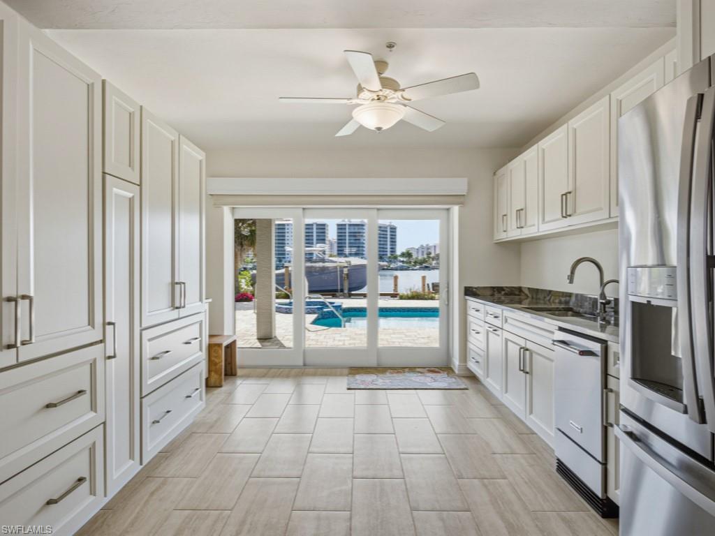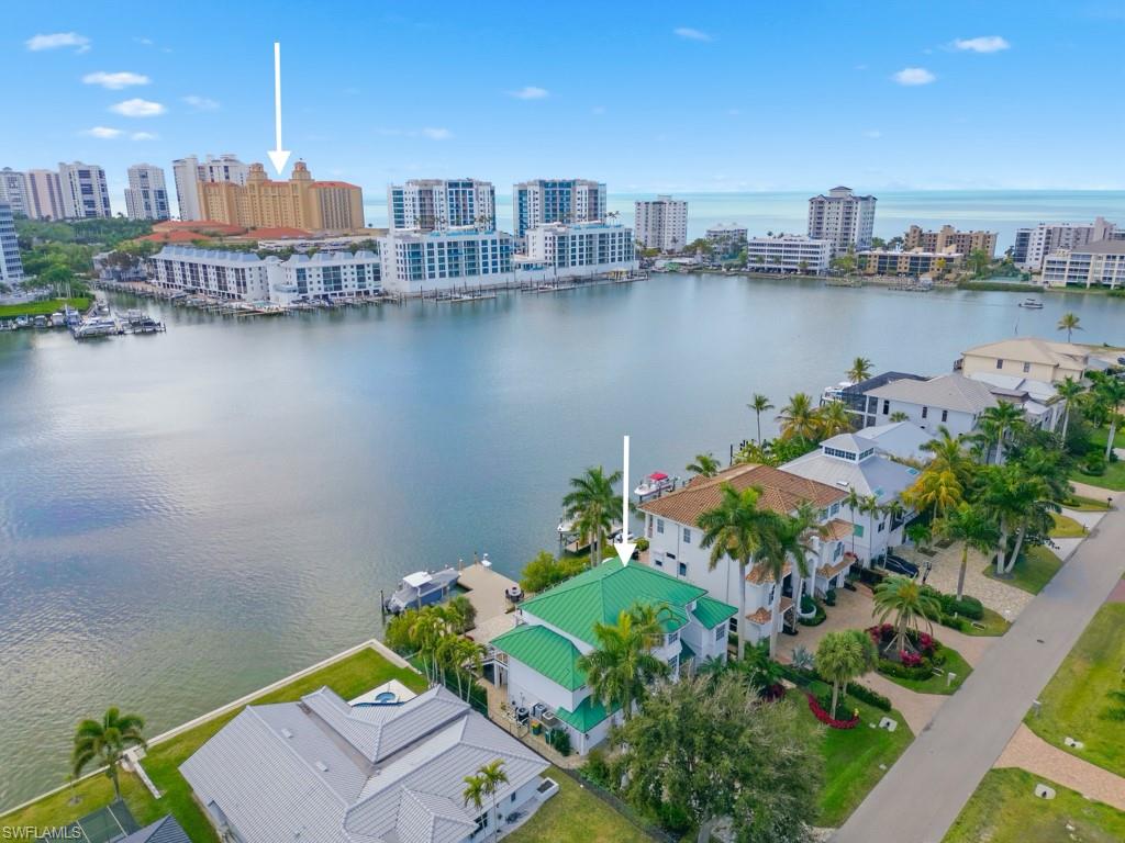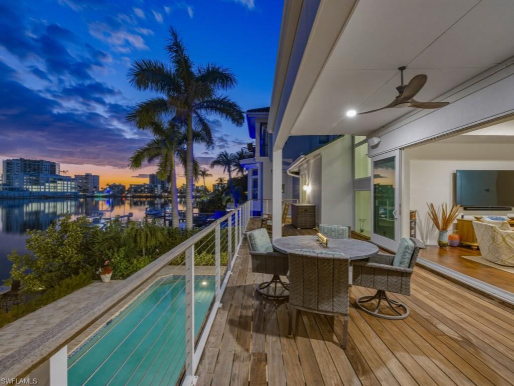 Nestled in the highly coveted Vanderbilt Beach area of North Naples, this exceptional water front residence in Conners showcases sweeping bay views and the very best of coastal luxury living. Just moments from the renowned Ritz-Carlton, area shopping, dining and the pristine white-sand beaches that define the Naples lifestyle, the location is simply unmatched. Enjoy direct Gulf access from your private boat slip and expansive adjoining dock with a 13,000 lb. lift, perfect for effortless & leisurely days on the water. Broad, Southern bay views and western exposure provide breathtaking sunsets from any of the cozy terraces & decks overlooking the sparkling pool and spa. The main living level features an open and spacious design with an eat-in kitchen, formal dining area, and two guest suites. The top floor is dedicated to the luxurious primary suite, offering privacy and elevated views. At ground level there are 2 additional bedrooms & bath, game or staging room & a private elevator which services all floors for ultimate convenience. This is Naples waterfront living at its finest. Please note that the Approx. Sq. Ft. U/A is calculated as the Gross Living Area (GLA) above grade.