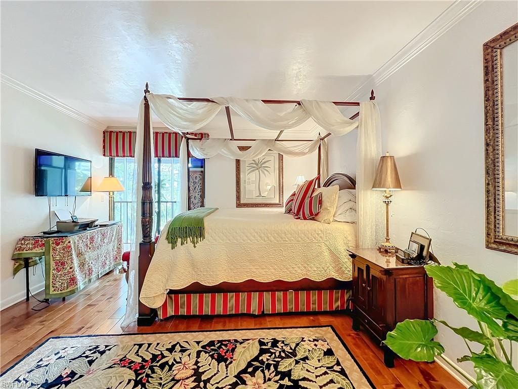 RARELY AVAILABLE, EXTREMELY PET & RENTAL FRIENDLY, NO BUILDING FLOODING IN ANY STORMS! Welcome to this exceptionally pet-friendly building located in the vibrant heart of Olde Naples. This spacious and inviting southwest corner unit is bathed in natural sunlight and boasts an expansive lanai equipped with convenient electric shutters. The recently remodeled kitchen features elegant granite countertops and modern stainless steel appliances, while the bathrooms are updated with sleek quartz counters and new cabinetry. Warm wood flooring adds a touch of charm and comfort throughout the unit. Recent updates to the building include a new roof 2022, new HVAC system installed in 2023, with a water heater in 2024. Notably, the building interior remained unaffected by flooding during both Hurricane Ian and Hurricane Milton, providing peace of mind for future residents.