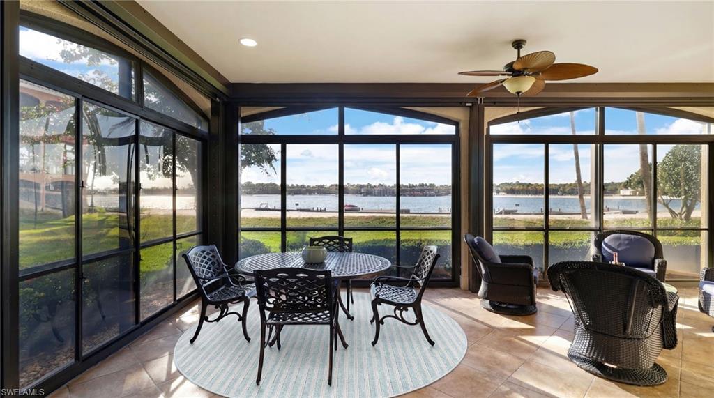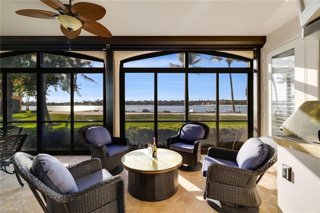 Experience breathtaking sunset views from one of the most coveted locations in Miromar Lakes. This spectacular first-floor, sunset-facing residence in the luxurious Vivaldi neighborhood offers unobstructed western exposure, creating stunning nightly skies and beautiful distant twinkling lights after dark. Ideally positioned in the heart of the community, the residence is just a short walk to the award-winning Beach Club and white sandy beaches. This beautifully updated 2-bedroom plus den, 2-bath home features all new tile flooring throughout, hurricane screens for added comfort and protection, and a thoughtfully updated kitchen and bathrooms designed with both style and functionality in mind. Tray ceilings and enhanced lighting highlight the spacious great room and dining area, while artistic interior accents add warmth and character. The expansive lanai is designed for true indoor-outdoor living, complete with an outdoor gas grill and kitchen, providing the perfect setting to relax or entertain while enjoying panoramic water views and unforgettable sunsets. Residents also enjoy the convenience of a complimentary boat dock, offering easy access to Miromar Lakes’ 700 acres of freshwater lakes and water activities. Located across from the Vivaldi pool and within close proximity to Miromar Lakes’ world-class amenities, residents enjoy an award-winning clubhouse, Beach Club, Blue Water Beach Grill, a 10,000-square-foot infinity pool and spa, fitness center, tennis courts, championship golf, three miles of private sandy beaches, and an active waterfront lifestyle unlike any other.