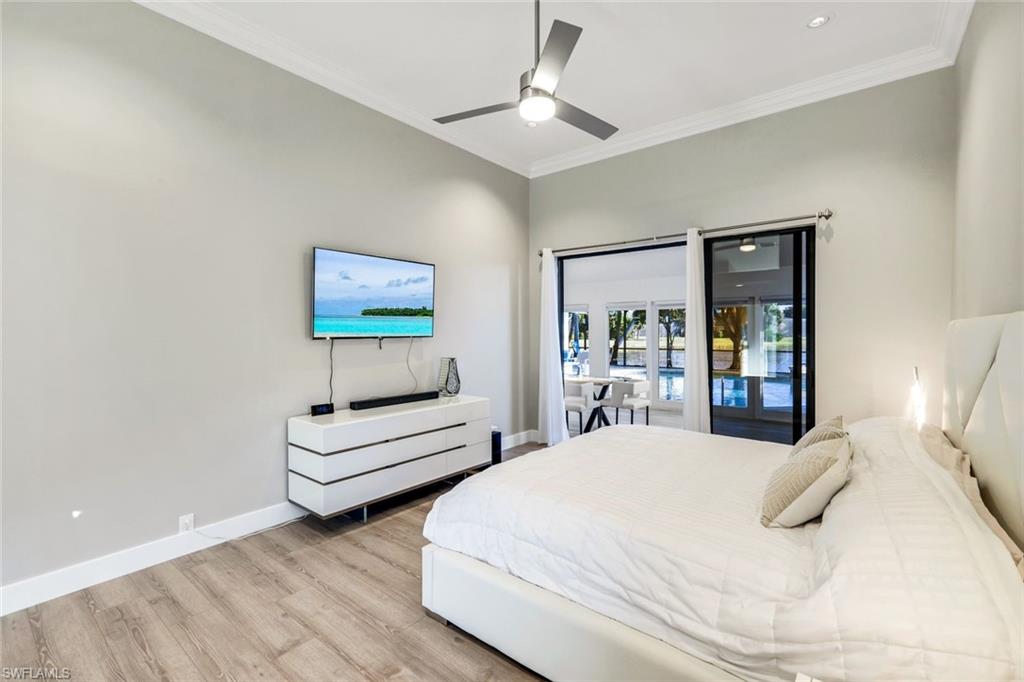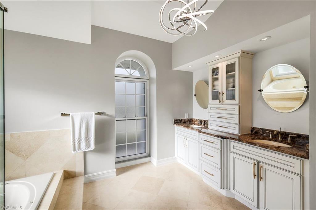 Tucked along a sparkling lake in the heart of Vanderbilt Lakes, this beautifully reimagined Arthur Rutenberg home offers more than just exceptional features — it offers a lifestyle defined by light, luxury, and the rhythm of Southwest Florida living. Imagine waking each morning to tranquil water views just beyond your windows. Sunlight pours through soaring ceilings and expansive glass, dancing across crown molding and custom finishes. The home feels open, airy, and welcoming — thoughtfully updated while preserving the timeless quality of its original craftsmanship. The day begins with coffee on your south-facing lanai, where long lake views stretch wide and wildlife drifts quietly across the water. By afternoon, the saltwater pool and spa shimmer under the Florida sun. The expansive, brick-paver lanai invites effortless entertaining — lunch at the outdoor dining table, a relaxing soak in the spa, and evenings gathered around as the sky turns brilliant shades of pink and gold. With a dedicated pool bath and seamless indoor-outdoor flow through impact French doors, hosting feels natural and easy. Inside, the renovated kitchen serves as the heart of the home — beautifully updated and perfectly positioned for both quiet mornings and lively gatherings. Custom living room built-ins and an electric fireplace create a warm focal point. The primary suite is a private retreat, complete with a fully remodeled spa-like bath featuring marble countertops, custom cabinetry, and a thoughtfully designed custom closet. Every improvement has been made with comfort, efficiency, and peace of mind in mind: new HVAC (2023), newer roof (2020), spray foam attic insulation, Culligan water softener, newer pool cage, hurricane-impact doors, accordion shutters, roll-down front shutters, and a hurricane-rated garage door. Situated on a generous 100-foot-wide lot with a circular driveway and west of US-41, this location is truly premier. Bike to nearby beaches and dining, join the Tarpon Cove Yacht & Racquet Club, and enjoy the convenience of top-rated schools, shopping, and restaurants just minutes away. Bonita Beach is only a five-minute drive, yet your peaceful lakeside setting feels worlds away.With low HOA fees and no CDD, this property offers not only refined living but remarkable value. This is the kind of home where mornings are slower, sunsets are savored, and every day feels like a retreat — a place where Florida living isn’t just enjoyed, it’s experienced.