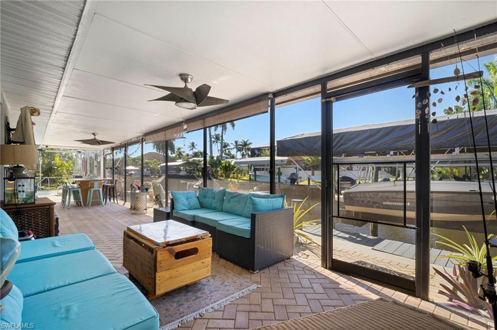 Great rental potential, NO HOA! Discover the ultimate Florida lifestyle in this peaceful waterfront home in the heart of Bonita Springs. Featuring three spacious bedrooms, two bathrooms, and an open floor plan, this property blends comfort with elegance. Enjoy premium finishes such as Italian porcelain tile, granite countertops, and crown molding throughout. Pamper yourself in the spa-reminiscent copper soaking tub, or sweat it out in the walk sauna in the Master Bedroom. Entertain, or melt away stress, your choice. Take a dip in the pool overlooking the canal, hop on the boat for a sunset cruise, or catch a snook off the dock; whatever your heart desires! Step outside to a beautifully paved driveway and lanai, a solar-heated pool, and a 10,000 lb. covered boat lift with upgraded cables and aluminum cradle. Hydro Dock for 3 person jet ski/kayak as well. Additional upgrades include a new electrical panel (2019), separate irrigation meter, and RV parking—perfect for all your needs. All new stainless appliances in 2024, new washer/dryer (largest residential 9.3 Cu. Ft washer available). Pool pump and equipment replaced in 2024 as well. Whole house GE water filtration system, reverse osmosis under-sink system with re-mineralization and dedicated tap (drinking water). Enjoy peace of mind with flood barriers on the lanai. Located just 1.3 miles from the Sugar Shack downtown, your are centrally located to the best that Bonita has to offer; live music, art festivals, and vibrant local culture. This home is more than a property—it’s your gateway to waterfront living and the best of Southwest Florida. Don’t miss this opportunity!