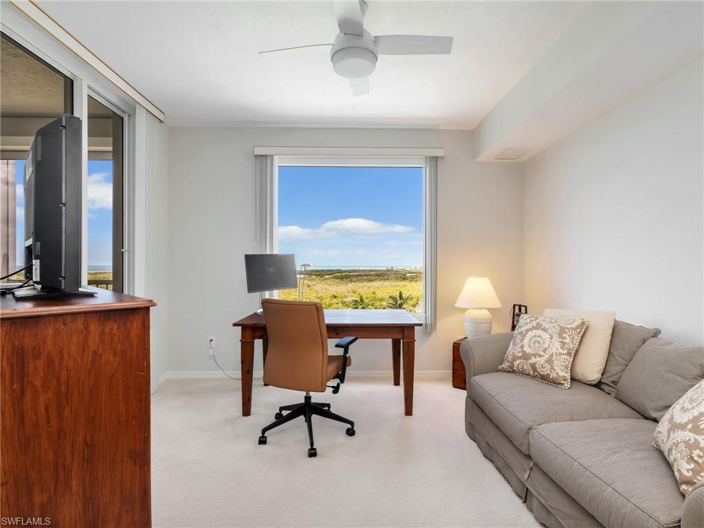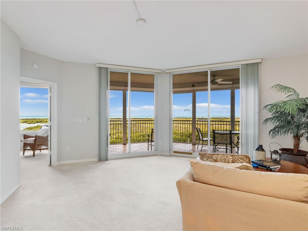 Wake up to sweeping, unobstructed views of the Gulf from this beautifully maintained 2-bedroom, 2-bath condominium situated on the 7th floor of the highly sought-after Arbor Trace. Designed for comfortable coastal living, the open layout is filled with natural light thanks to expansive windows that perfectly frame the water and sky. The main living areas flow seamlessly, creating an ideal environment for both relaxed daily living and effortless entertaining. The generously sized primary suite enjoys private balcony access and tranquil Gulf views, along with an en-suite bath featuring dual vanities and a spacious walk-in shower. The second bedroom is thoughtfully positioned for privacy, making it perfect for visiting guests or a dedicated home office. Step outside onto your private balcony to savor breathtaking sunsets and refreshing coastal breezes — your own front-row seat to Southwest Florida’s natural beauty. One covered garage parking space is included, and furnishings are negotiable for added convenience. Arbor Trace is a resident-owned, independent living community that offers exceptional amenities, including a resort-style heated pool, fitness center, tennis/pickleball, bocce courts, golf putting green, two libraries, special events, and gourmet dining at the clubhouse. Benefit from comprehensive support services such as 24-hour medical monitoring, transportation to medical appointments, shopping, and group outings. Arbor Trace is a vibrant 55+ community that offers the unique advantage of deeded condominium ownership with 100% equity and no financial or medical requirements, allowing you to rent, sell, or pass your home to your heirs. Enjoy peace of mind with an on-site assisted living if you need it.