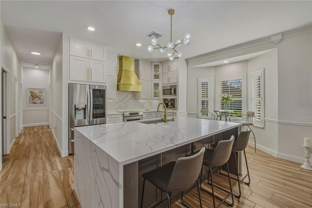 Tucked away at end of a quiet cul-de-sac on a .38-acre pie-shaped lot with set-back neighbors, this completely updated four-bedroom-plus-den, two-bath residence offers rare privacy, breathtaking lake views and unforgettable sunsets, all just a 10-minute drive to 5th Ave and the beach. With an incredibly low HOA of only $337 per year, this home delivers luxury, location and lifestyle without compromise. From the moment you go inside, you’ll appreciate the bright, airy open-concept design and ideal split floor plan. Designed for everyday comfort and exceptional entertaining, the heart of the home features a stunning remodeled kitchen (2022) with a massive island, Miele plumbed coffee maker, expansive pantry, and all-new lighting and chandeliers throughout. This space flows effortlessly into the main living areas and out to the pool, blending indoor and outdoor living. The spacious owner’s suite is a retreat, offering a luxurious oversized shower, generous storage and serene views. Three additional guest bedrooms plus a versatile den provide flexibility for work, hobbies or hosting. Go outside to your private backyard oasis overlooking the lake. Enjoy gorgeous sunsets from the pool area enhanced with new teak beams, landscape lighting, a new outdoor grill, and a new saltwater pool system (2025) with new pump and filter. The lush grounds have been fully refreshed with new sod, an irrigation system and 200 linear feet of upgraded clusia hedges for added privacy. With more thoughtful upgrades, including a new whole-house and pool solar system as well as a new air conditioner (2023), this property offers modern peace of mind and refined style in every detail. Private. Updated. Move-in ready. Sunset views included.