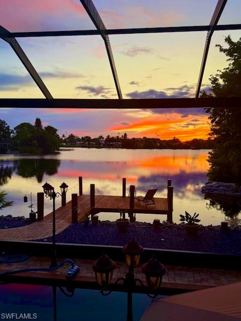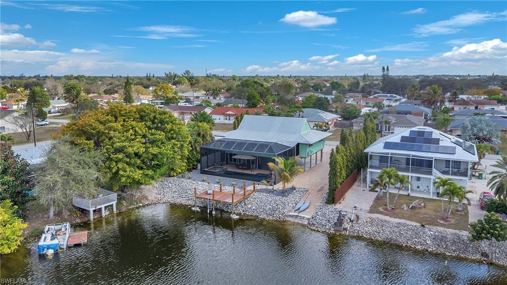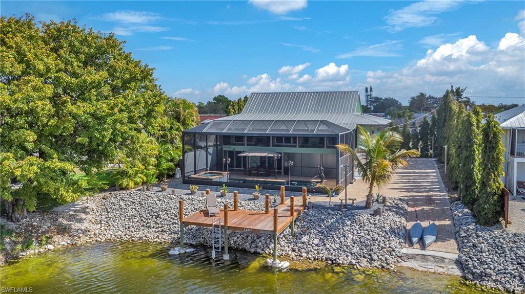 Exceptional waterfront opportunity in Golden Gate City! Calling all boating and fishing enthusiasts — this property overlooks beautiful Lake Sapphire and offers direct water access from your own backyard. Launch your boat from your private ramp and spend the day fishing for tarpon, snook, largemouth bass, right from your dock. Enjoy peaceful mornings with coffee by the water and stunning sunset views in the evening. The home offers privacy and impressive curb appeal with a full paver driveway and extensive exterior upgrades. Inside, you’ll find thoughtful renovations throughout, including impact-resistant doors and windows and a panoramic screened pool enclosure that maximizes the outdoor living experience. The layout features three private ensuite bedrooms. The oversized primary suite is a showstopper with a glowing natural stone vanity and a dramatic waterfall tile feature that creates a true spa-like atmosphere. Custom built-in closet shelving provides both elegance and functionality. The lower level offers incredible versatility — perfect for a guest retreat, in-law suite, efficiency, private bedroom, or expansive entertaining space, fully separated from the main living area upstairs. Major system updates include a 2023 HVAC, a new water heater, and a new mini-split system downstairs. Waterfront living, modern upgrades, flexible space, and unbeatable views — this one is truly special.