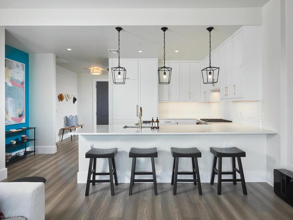 Experience the charm of Old Naples, situated just steps from 5th Avenue and a short distance from the beach. This nearly new two-bedroom plus den, two-bath condominium features an open floor plan, high ceilings, wide-plank wood flooring, and abundant natural light, complemented by an oversized terrace. The kitchen is equipped with a luxury appliance package, including a Wolf range with gas cooking and a Sub-Zero refrigerator, seamlessly connecting to the spacious living and dining areas. The primary suite boasts a spa-like bathroom, while the den serves as an ideal office or guest space. With designer furnishings, custom window treatments, and turnkey convenience, this home is ready for immediate occupancy. Enjoy a private balcony with sunset views alongside boutique amenities, including a resort-style pool and spa, outdoor grilling area, rooftop summer kitchen, covered parking, and secured entry. This property is available furnished and accessorized.