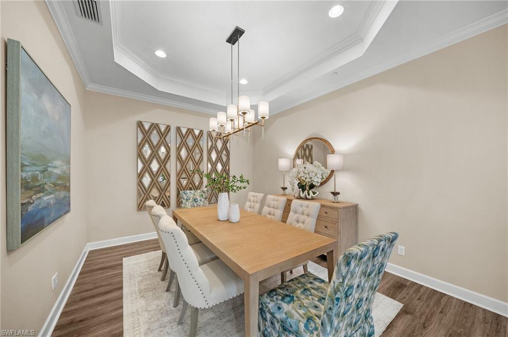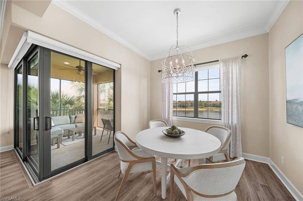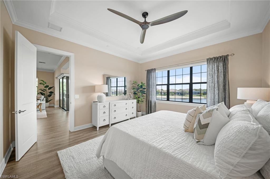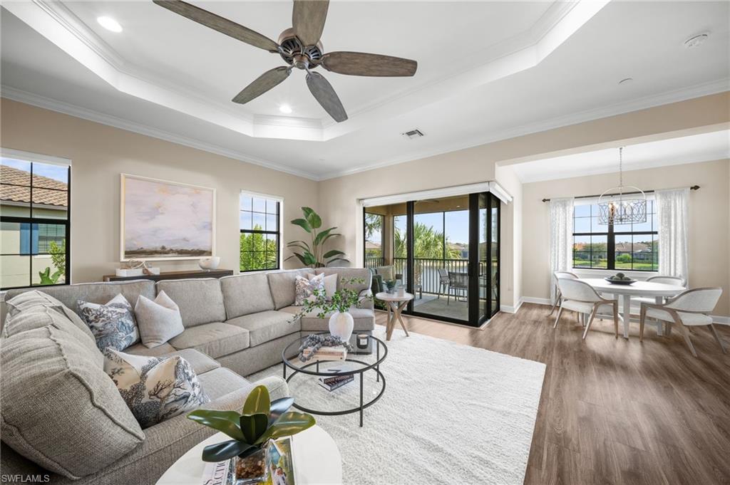Start living a vacation lifestyle in Esplanade G&CC! This 3 bedroom, 3 full bath "Romano" second-floor END UNIT coach home blends style, comfort, & panoramic views of a tranquil lake and comes partially furnished! Designed with an open, airy layout, the expansive great room is anchored by an impressive zero corner pocketing sliding glass door, inviting you to step out onto a private, tiled and screened lanai—perfect for enjoying the warm Naples breeze and picturesque sunrises. The heart of the home is a beautifully appointed kitchen featuring a generous center island, GE Cafe stainless steel appliances including an additional dual zone wine cooler, Cambria quartz countertops, and abundant cabinetry, creating a space that is as functional as it is inviting. The great room showcases a custom feature wall complete with an LED fireplace, built-in cabinetry, and stylish shelving, adding both warmth and sophistication to the space. Elegant upgrades are found throughout, including hurricane-impact windows and doors, special order designer lights/fans/chandeliers, master closet built-in cabinets, luxury laminate flooring throughout the common areas & primary bedroom, and more! This unit is located just steps away from the Montelanico pool! This property also comes with a CLUB/SOCIAL Membership, granting full access to all the amenities of Esplanade Golf & Country Club including limited golf opportunities all year round! Located in Esplanade Golf & Country Club, residents enjoy resort-style amenities, including a pool with cabanas & Bahama Bar, tennis, pickleball, bocce, Koquina Day Spa, fitness center, dog parks, 14 miles of biking/walking trails, a private 18-hole golf course, and a 15,000 sq. ft. clubhouse with a restaurant, bar, wine tasting room, wine lockers, and a Starbucks-style café. COMING SOON TO ESPLANADE! (2026): Fully renovated and expanded poolside Bahama Bar; expanded outdoor bar at the Barrel House; expanded golf practice range; and an AIR CONDITIONED INDOOR PICKLEBALL COMPLEX with four indoor courts.