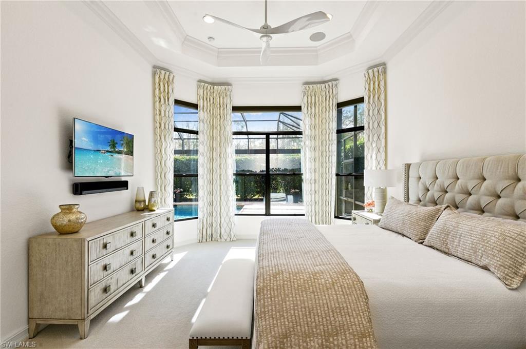 Welcome to 7509 Lantana Circle, ideally situated within the prestigious Lantana subdivision of Olde Cypress—one of Naples’ most sought-after communities. This meticulously maintained home effortlessly blends timeless elegance with modern sophistication, offering an expansive open-concept floor plan designed for both upscale entertainment and everyday living. Step inside to a light-filled great room highlighted by soaring ceilings, designer finishes, and impressive sliding glass doors that create a seamless indoor-outdoor flow. The gourmet kitchen serves as the heart of the home, featuring rich quartz countertops, premium stainless-steel appliances, a generous center island, extensive custom cabinetry, and a brand-new Sub-Zero refrigerator (2025). The luxurious primary suite is a private retreat with dual walk-in closets and a spa-inspired bath complete with dual vanities, a soaking tub, and a separate glass-enclosed shower. Additional guest suites are thoughtfully positioned to provide comfort and privacy for family and visitors. The screened lanai offers a true extension of the living space—perfect for morning coffee, sunset cocktails, or hosting guests poolside. A new pool heater (2025) ensures year-round enjoyment, and the New Alfresco Outdoor Grill and Hood (2025) elevate the outdoor entertaining experience. Additional highlights include a large laundry room, three-car garage, lush tropical landscaping, and hurricane impact windows and screens. Residents of Olde Cypress enjoy access to an fully renovated upscale clubhouse (2026), 18-hole championship golf course designed by legendary golf course architect and designer P.B. Dye, fine dining, full fitness facilities, and vibrant social programming. Exciting brand-new amenities debut in 2026, further elevating the lifestyle experience. Located 25 minutes to RSW, 20 minutes to downtown 5th Avenue, 15 minutes to the beaches, 10 minutes to Mercato, and just minutes from restaurants and grocery stores. Whether you’re seeking a seasonal retreat or a full-time residence, this exceptional home truly checks every box. Furniture is negotiable for added convenience!