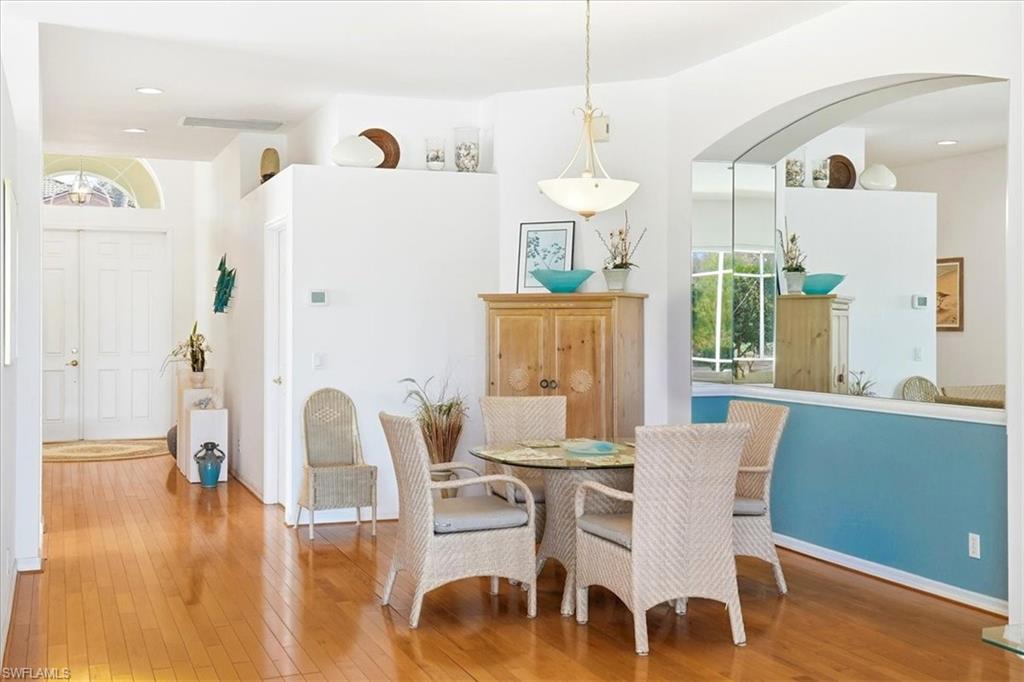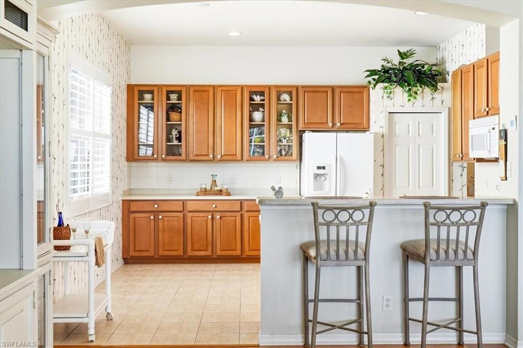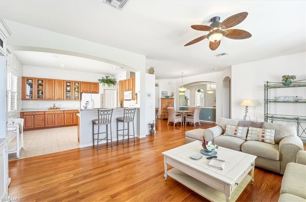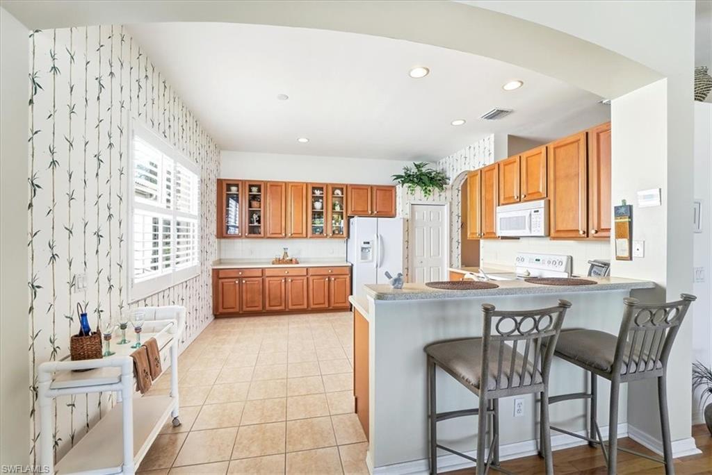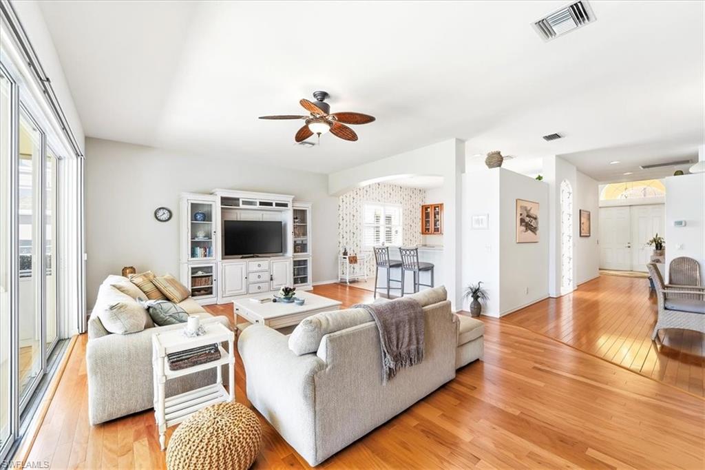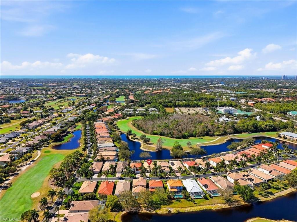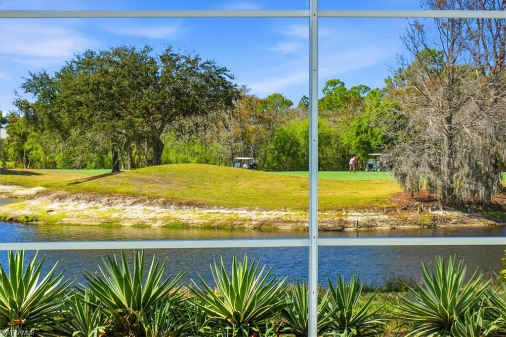 Welcome to your private coastal retreat in Marbella at Spanish Wells. This beautifully maintained 3-bedroom 2- bath single family home offers a wall of windows which allows for effortless Florida living, serene lake and golf course views along with western exposure and a private pool perfectly positioned to capture breathtaking sunset skies. Designed with a light and airy coastal aesthetic, this turnkey residence features an open concept floor plan ideal for both everyday living and entertaining. The home offers high ceilings with a spacious living room and dining area which flow seamlessly into the kitchen, creating a bright and welcoming atmosphere filled with natural light. The extra-large primary suite is a true retreat, offering generous space, privacy, and comfort. A split bedroom layout provides separation for guests, making this home ideal for season or full time living. From your screened lanai enjoy tranquil water and golf views, warm afternoon sun and the indoor-outdoor lifestyle that Southwest Florida is known for. Located in the gated community of Marbella in Spanish Wells, residents can enjoy optional golf, clubhouse amenities and a prime location, close to beaches, dining, and shopping.