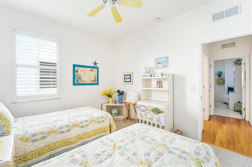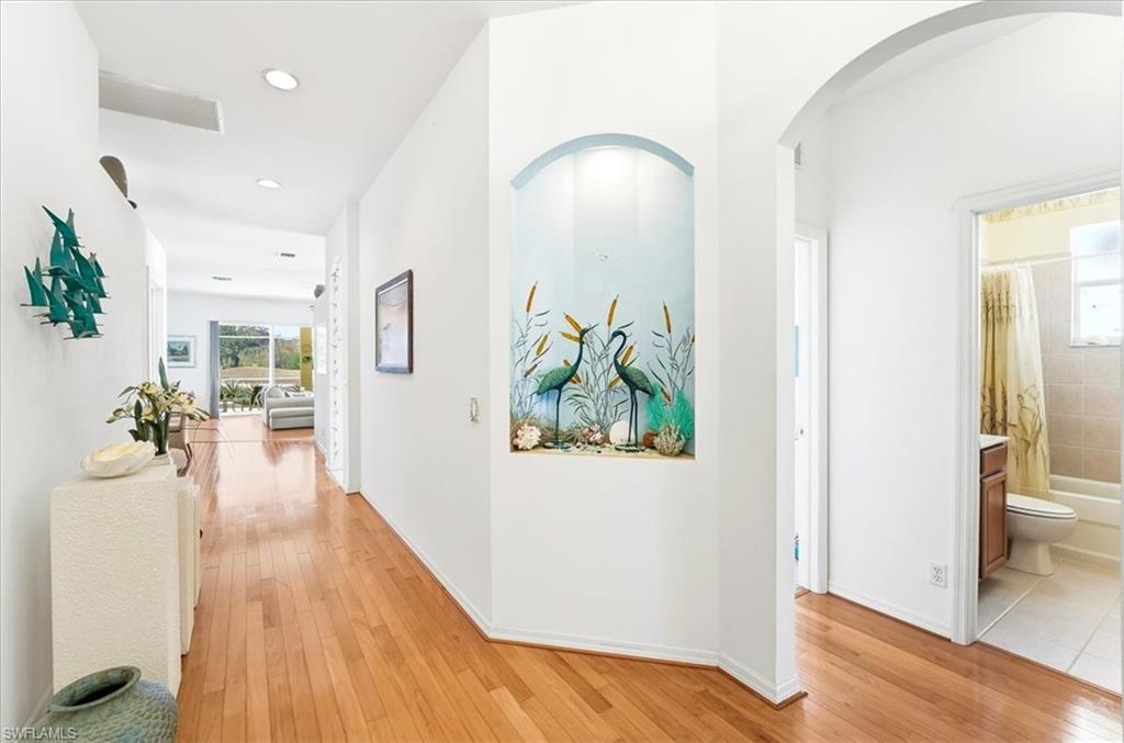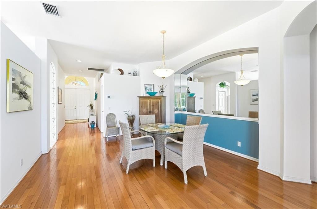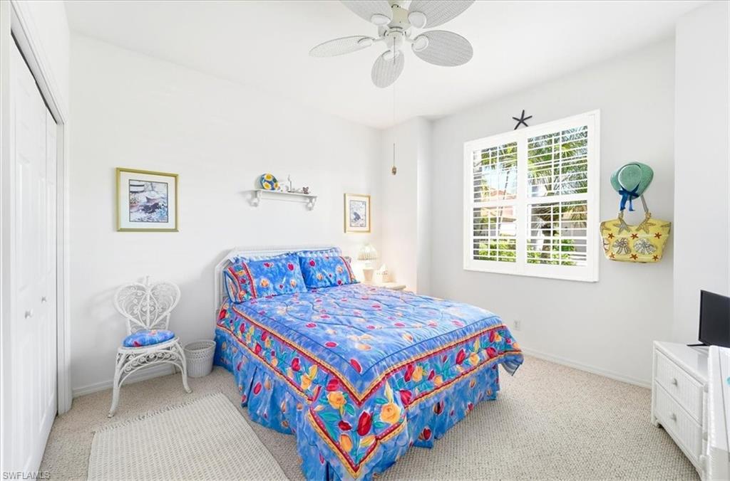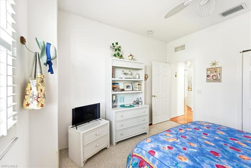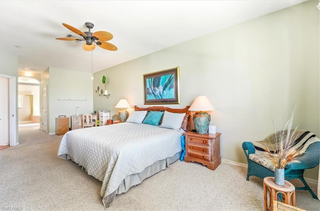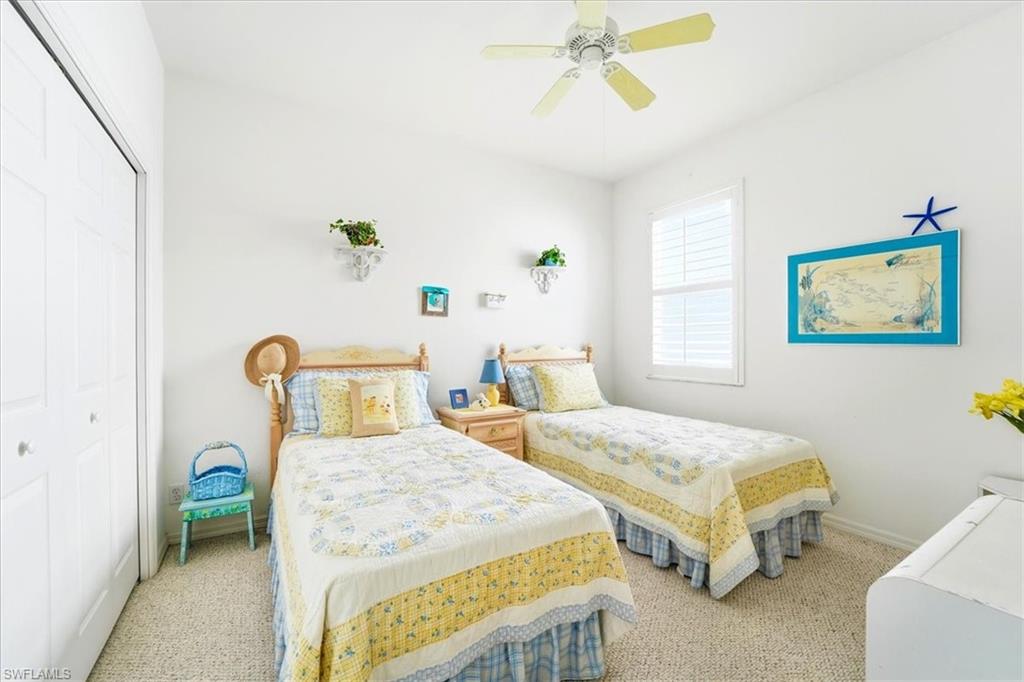 Welcome to your private coastal retreat in Marbella at Spanish Wells. This beautifully maintained 3-bedroom 2- bath single family home offers a wall of windows which allows for effortless Florida living, serene lake and golf course views along with western exposure and a private pool perfectly positioned to capture breathtaking sunset skies. Designed with a light and airy coastal aesthetic, this turnkey residence features an open concept floor plan ideal for both everyday living and entertaining. The home offers high ceilings with a spacious living room and dining area which flow seamlessly into the kitchen, creating a bright and welcoming atmosphere filled with natural light. The extra-large primary suite is a true retreat, offering generous space, privacy, and comfort. A split bedroom layout provides separation for guests, making this home ideal for season or full time living. From your screened lanai enjoy tranquil water and golf views, warm afternoon sun and the indoor-outdoor lifestyle that Southwest Florida is known for. Located in the gated community of Marbella in Spanish Wells, residents can enjoy optional golf, clubhouse amenities and a prime location, close to beaches, dining, and shopping.