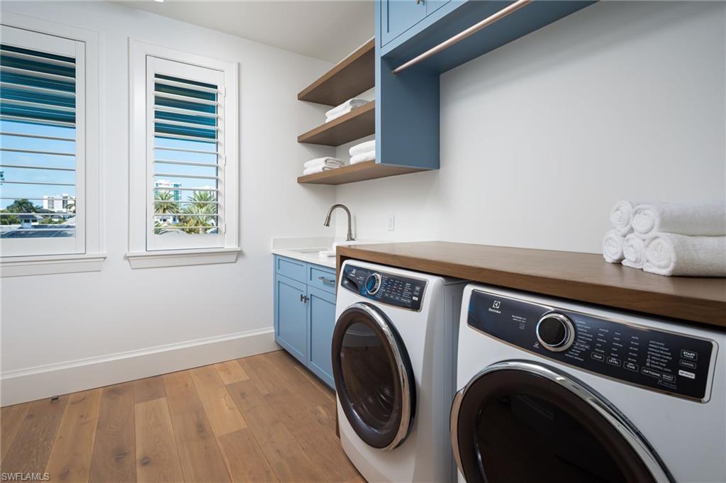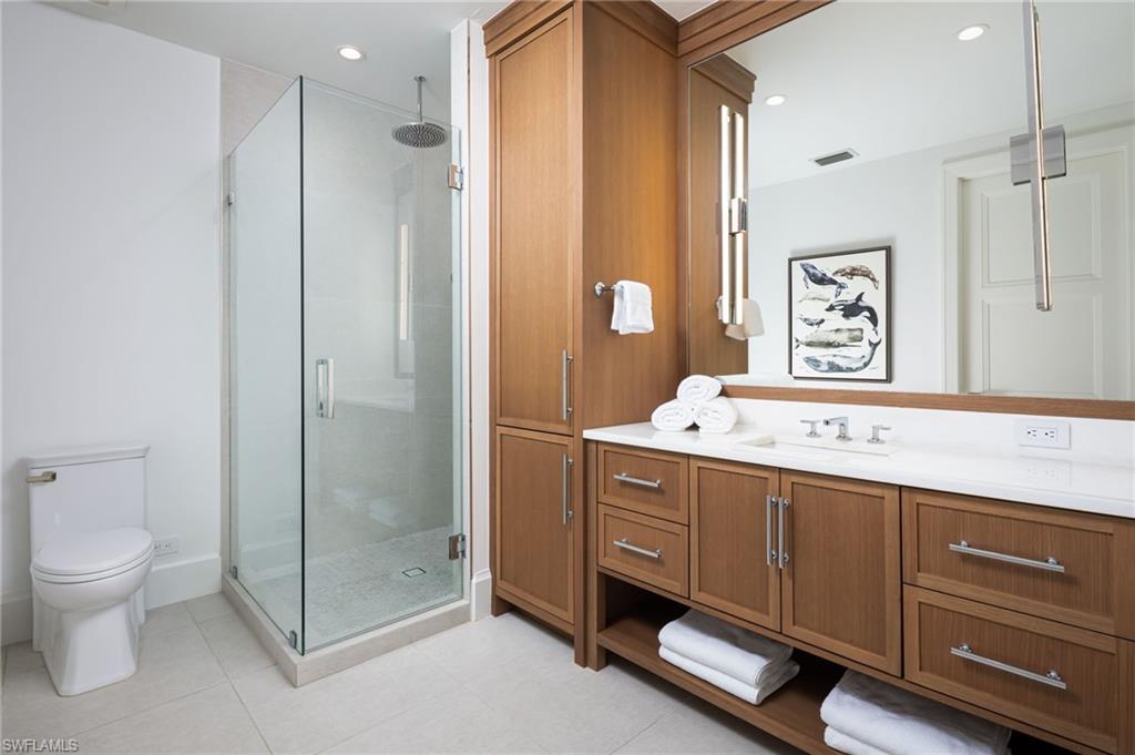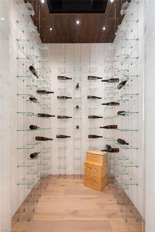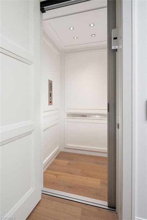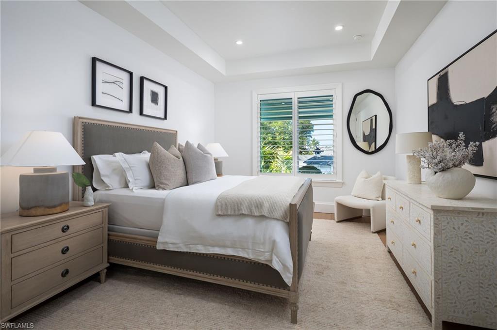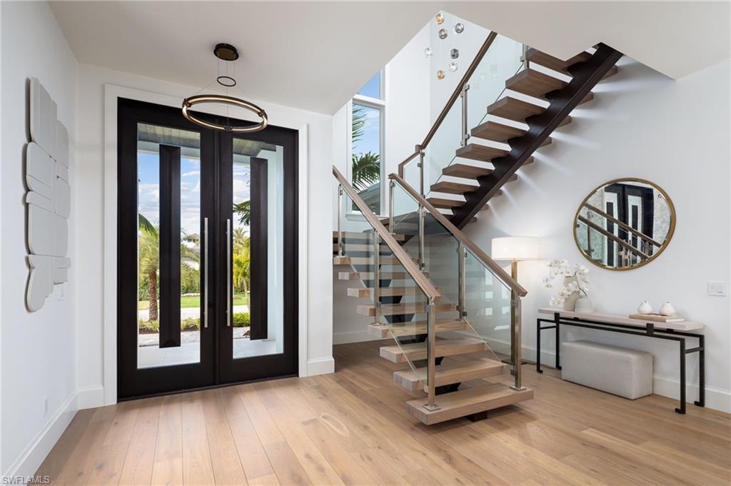 Experience the Naples lifestyle at its finest in this move-in–ready new construction residence, perfectly situated in the heart of Park Shore. Thoughtfully designed by award-winning architect, Tony Boyatt and masterfully built by Gulfstream Homes, this solid block, high-and-dry property (approximately 13.5 feet above FEMA) combines timeless coastal elegance with cutting-edge modern comforts. Legno Bastone white oak flooring, a custom front entry door, and a dramatic floating staircase set the tone the moment you enter. The open-concept great room centers around an infinity mirrored gas fireplace and flows seamlessly into a chef’s kitchen featuring custom Ruffino cabinetry, ultra premium Crystallo quartzite countertops with an oversized island, and a full suite of Wolf/Sub-Zero appliances. A cooled wine room, elevator, whole-home generator on an elevated pad, and Control4 home automation with integrated speakers/cameras/security further enhance everyday living. The floor plan is ideal for families and multi-generational living, with a spacious first-floor primary suite, a generous guest suite, a large office/den, and a well-appointed laundry room on the main level. Upstairs, a substantial landing with wet bar anchors three large en suite bedrooms, a full second laundry room and access to multiple balconies, including a full-length second-floor balcony that invites outdoor relaxation. Designed for year-round indoor–outdoor living, the expansive covered lanai includes motorized retractable screens and storm shutters, a full summer kitchen with ice maker, outdoor fire pit, and a custom pool and spa with water features and a swim-resist jet. Additional upgrades include whole-home water filtration with de-chlorinator, programmable LED lighting, an LG Steam Closet system, and second-floor concrete construction for added peace of mind. Residents of this coveted Park Shore address enjoy access to a private Park Shore beach membership at a modest annual cost, the option to purchase boat slips exclusive to Park Shore owners, and a short walk to the boutiques and dining of Venetian Village. This property stands out as one of the premier new construction offerings in Park Shore—delivering exceptional design, quality, and lifestyle in one of Naples’ most sought-after neighborhoods.