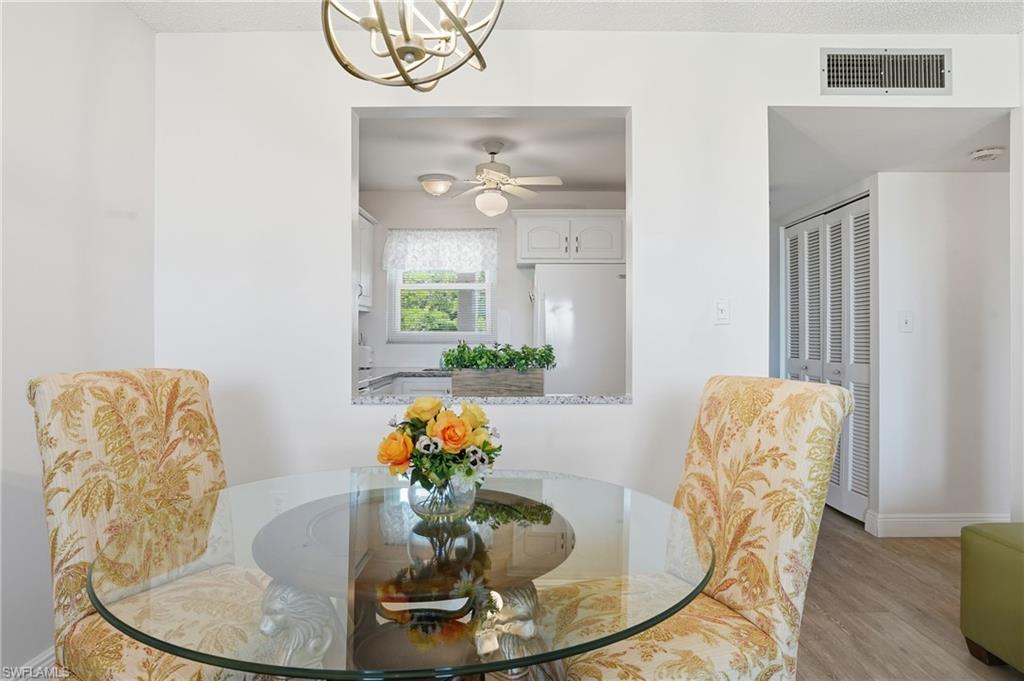 Welcome to this inviting TURNKEY FURNISHED 1-bedroom, 1-bath second-floor condo with ELEVATOR ACCESS, ideally positioned in a central Naples location... Nestled within the scenic Quail Run Golf community—where golf membership is available but not mandatory—this residence offers a relaxed lifestyle surrounded by lush Florida vegetation, swaying palm trees, and vibrant tropical landscaping. Once inside, there are UPDATES THROUGHOUT - including updated windows, and a bright, COASTAL-INSPIRED INTERIOR....The kitchen features white RAISED PANEL CABINETRY, granite countertops, and a comfortable design, making this home move-in ready for seasonal enjoyment or year-round living. The true highlight is your private SCREENED LANAI with SOUTHERN REAR EXPOSURE, overlooking the serene golf course and TRANQUIL WATER VIEWS—an ideal setting for morning coffee, birdwatching, or unwinding after a day at the beach. Residents enjoy access to a nicely sized community pool, TENNIS COURTS, CLUBHOUSE, and social activities, creating opportunities to connect and enjoy the Naples lifestyle. Just minutes from Gulf beaches, shopping, dining, and everyday conveniences, this property combines peaceful surroundings with exceptional accessibility around Naples... Whether you're seeking a winter retreat, full-time residence, or low-maintenance getaway, this condo offers comfort, convenience, and timeless Florida charm. Buyer to verify all information.