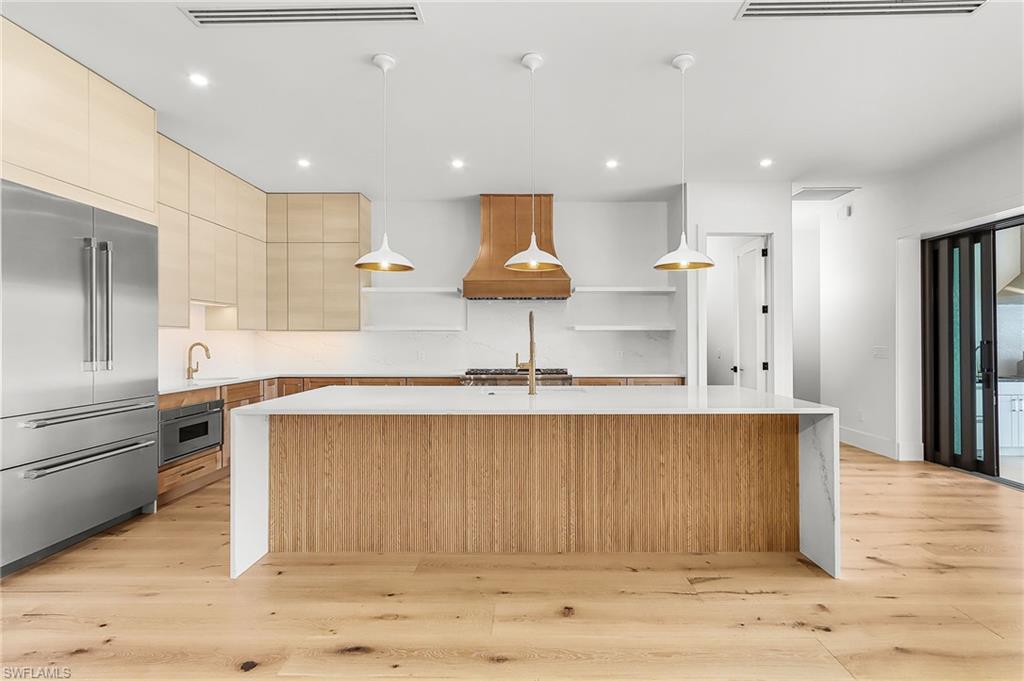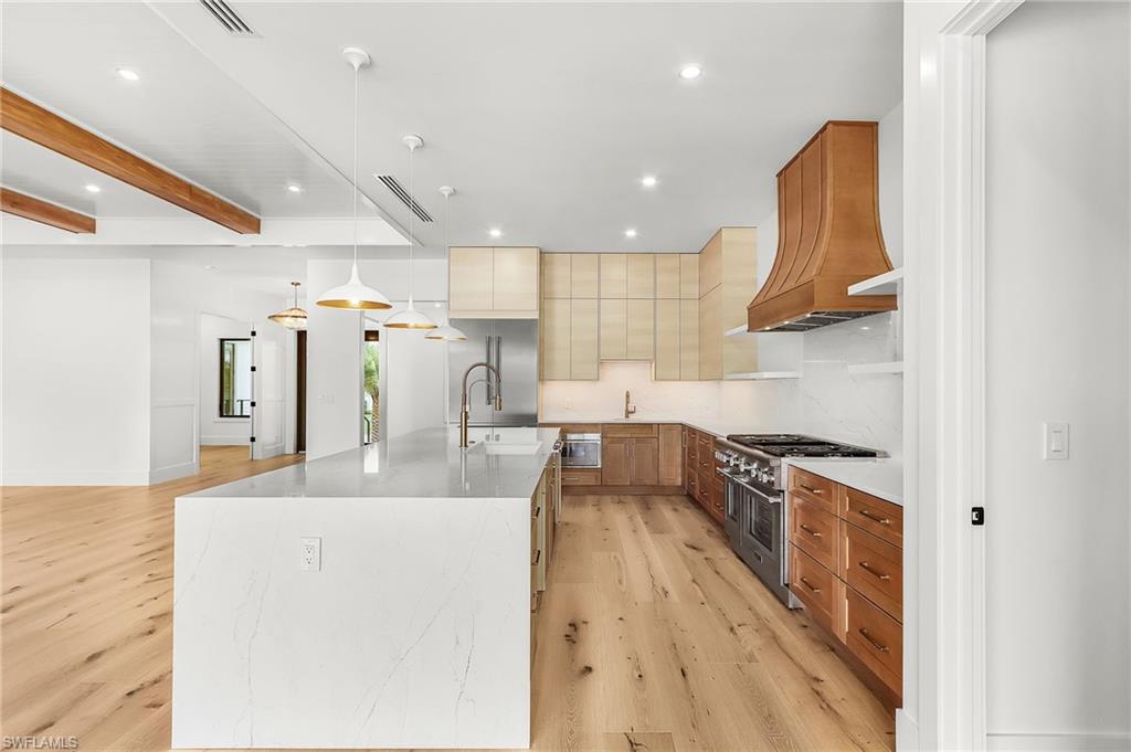 Welcome to your dream home, where luxury new construction meets effortless waterfront living. This stunning 4 bedroom plus den, 4.5 bath custom pool home is thoughtfully designed with both elegance and functionality in mind. From the moment you enter, you'll appreciate the seamless flow, elevated finishes, and carefully curated details throughout. Wide European French Oak hardwood flooring spans most of the home, adding warmth and sophistication. At the heart of the home is a show-stopping chef's kitchen featuring warm honey-toned cabinetry, a beautiful reeded island, luxe gold Brizo fixtures, and a Thermador gas range and appliances - including dual dishwashers, pantry and beverage refrigerator. The open concept layout transitions effortlessly into the spacious living and dining areas, ideal for both everyday comfort and entertaining. Step outside to your private oasis: a sparkling heated pool with sun shelf and integrated spa overlooking tranquil waterfront views. With gulf access from your private dock, boating enthusiasts will enjoy convenient access to open waters right from their backyard. The primary suite, with views overlooking the water, features a nickel gap shiplap tray ceiling and his and hers oversized closets. The luxurious en-suite bathroom boasts a standalone soaking tub, dual vanities, and a walk-in shower with a rain head and handheld sprayer. A separate private casita with an entrance from the front porch provides ultimate flexibility for visitors, multigenerational living, professional office, studio or fitness space. Additional features include propane gas, built in grill and outdoor kitchen, outdoor shower, and recessed electric screens. The laundry room includes a wet hanging stall with handheld shower for quick cleanups or bathing pets. The three-car epoxy-finished garage with fourteen-foot ceilings, includes a rebar-reinforced floor bay for a future car lift. Also, pre-wired for two electric car charging outlets. Coconut River has no HOA, but the community does offer a Civic Organization which includes heated community pool, tennis, pickleball, play area, dog park and a private boat launch with trailer and kayak storage. This exceptional property offers modern luxury, thoughtful design, and the ultimate Florida lifestyle - all in one extraordinary home.