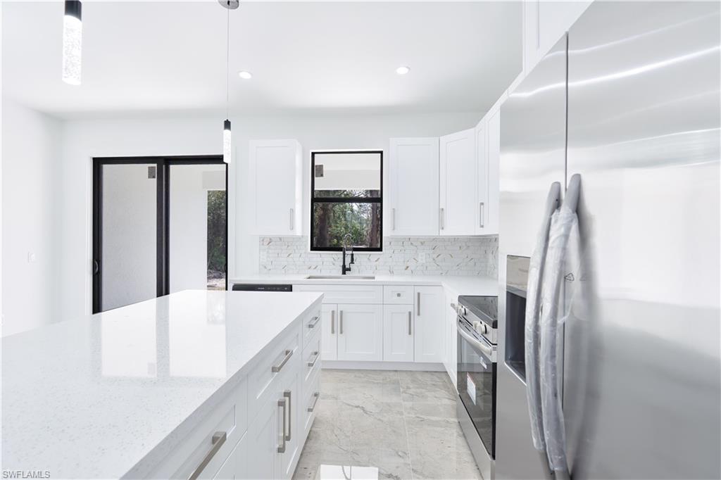 Discover this beautiful new construction home offering 3 spacious bedrooms, plus a versatile den, perfect for an office or bonus room. Featuring 2 modern bathrooms, an open-concept layout, and quality finishes that combines style, comfort, and value. The kitchen offers quartz counters in an attractive island configuration. The peaceful master bedroom includes a large and splendid bathroom with double sinks, and shower. In addition to the convenience of the private bathroom, you will find plenty of closet space and nice touches.The other two unique, quiet bedrooms are located above the ground floor for enhanced privacy. A brief driveway connects to an attached two-car garage, and the generous yard provides plenty of opportunity for enjoyment. This appealing home is perfectly situated in Naples' highly desirable Golden Gate Estates neighborhood. A perfect blend of quality and affordability, this home is ideal for families, first-time buyers, or anyone seeking a modern home, with a perfect location at a great price.