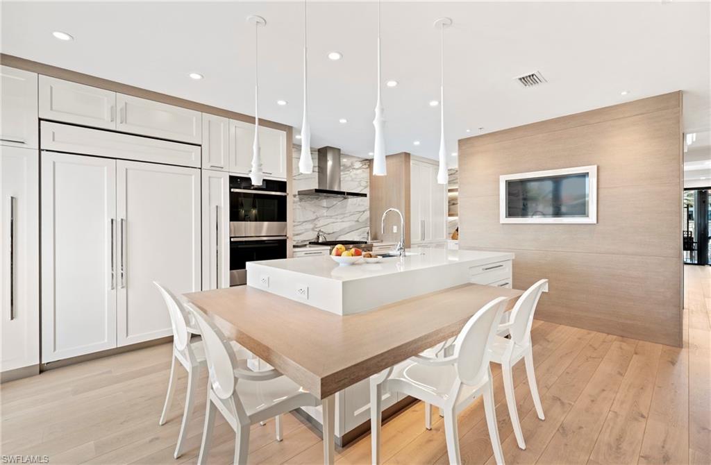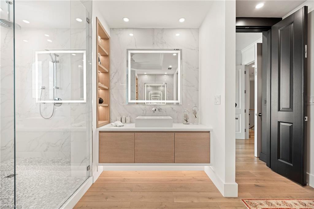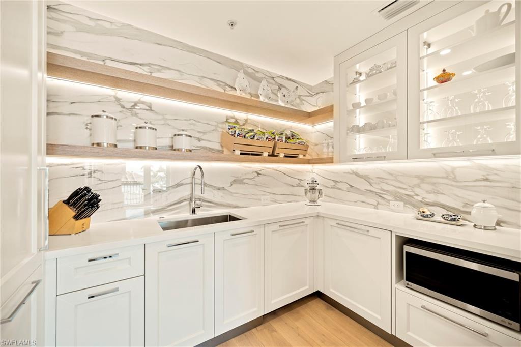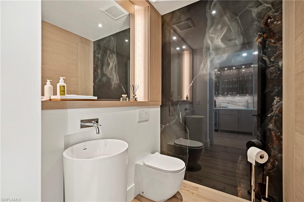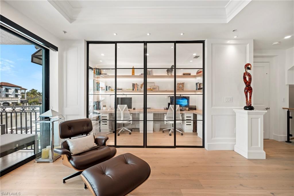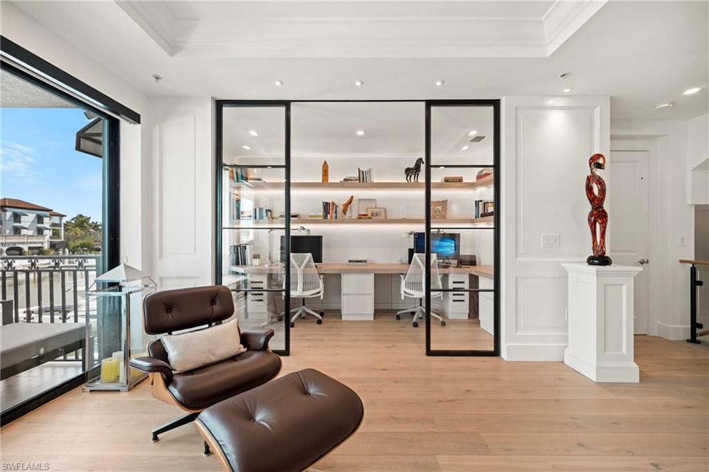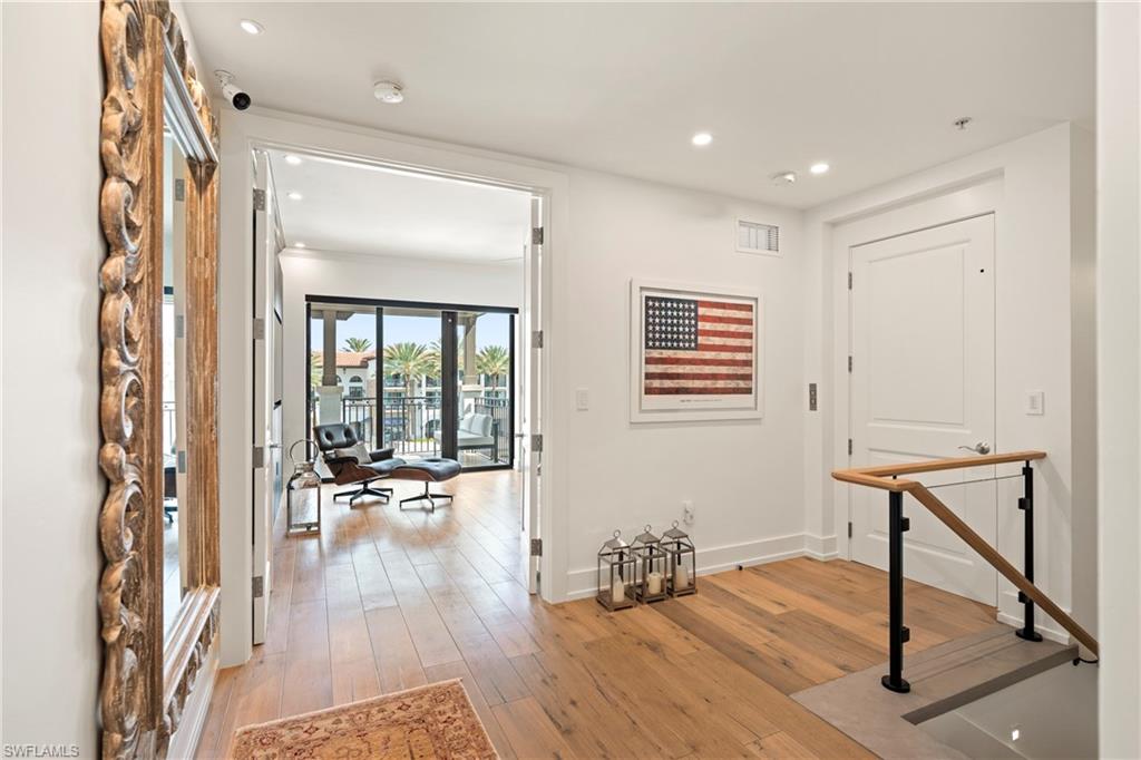 Experience elevated coastal living at Naples Bay Resort, where this extraordinary 3-bedroom plus office, 3.5 bath waterfront residence redefines luxury. This completely renovated home showcases a fresh, sophisticated design with every detail thoughtfully reimagined for modern elegance. Tucked inside one of Naples most coveted gated enclaves, this stunning townhouse captures sweeping marina and bay views from five private balconies, each one a front-row seat to glowing sunsets and gentle Gulf breezes. Inside, refined elegance meets effortless comfort. Sunlight pours through floor-to-ceiling doors and windows, illuminating an expansive open layout adorned with updated designer finishes, custom millwork, and elevated architectural details throughout. The renovation introduced premium materials and contemporary touches, creating a seamless blend of style and functionality. The gourmet kitchen now shines as both a showpiece and workspace, featuring top-tier appliances, bespoke cabinetry, and sleek quartz countertops perfect for intimate dinners or vibrant entertaining. A private elevator leads to the serene primary suite, a true sanctuary redesigned with a spa-inspired bath, oversized walk-in closets and its own balcony overlooking tranquil waters. The thoughtfully designed floor plan ensures exceptional privacy, with spacious guest suits each offering en-suite baths and private outdoor retreats. The versatile office adapts beautifully to your lifestyle. Rare for resort living, this residence includes a spacious two-car garage and its own private elevator. Ownership grants exclusive membership to the Naples Bay Club, unlocking a world of resort-caliber amenities: five sparkling pools and a lazy river, Har-Tru tennis courts with an on-site pro, a state-of-the-art fitness center, and direct Gulf access with on-site boat rentals. Savor waterfront dining at celebrated venues including Blackbird Modern Asian, Nosh on Naples Bay, BlueWater Bar & Grill, Café on the Bay, and the members-only Indulge Lounge. Just moments away and within walking distance, the vibrant energy of Fifth Avenue South awaits with its upscale boutiques, fine dining, and entertainment, along with Naples iconic white-sand beaches. This is more than a home, it’s a newly transformed waterfront retreat where every detail reflects timeless luxury and effortless coastal living.