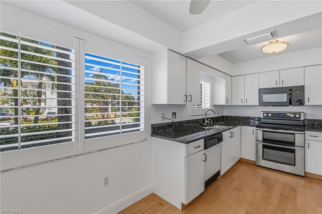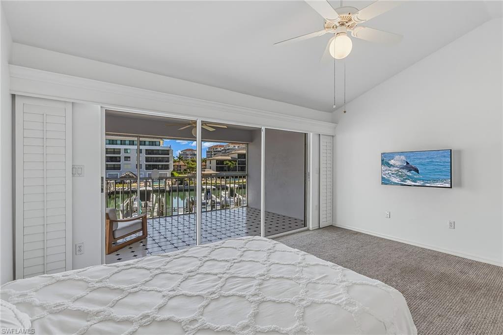 Beach and boater’s paradise found at this exceptional town house in Pelican Perch. Rarely offered 3-bedroom, 2.5 bath two-story residence with over 1,800 square feet of inviting living area. Offering quick and direct boating access with a deeded dock, this tropical getaway is just 2 blocks from the sugary sands of our world-famous beach. Step in through the private entrance to a bright dining area and large updated kitchen with granite countertops, wood flooring, and newer appliances. Spacious, inviting living room and lanai offer scenic pool and canal views. Also, providing easy access to boat slips, sunny pool, grill area, and parking. Second level showcases a large, bright primary bedroom suite including a beautifully updated bathroom, walk-in closet, and a private lanai with its own tropical views. Many other special features include plantation shutters throughout, convenient interior laundry room, storm shutters and two under-building, adjacent parking spaces. This small and pleasant, pet friendly Pelican Perch community offers a large sparkling pool and barbeque area for relaxing and entertaining. Come and enjoy the best of waterfront living on beautiful Marco Island