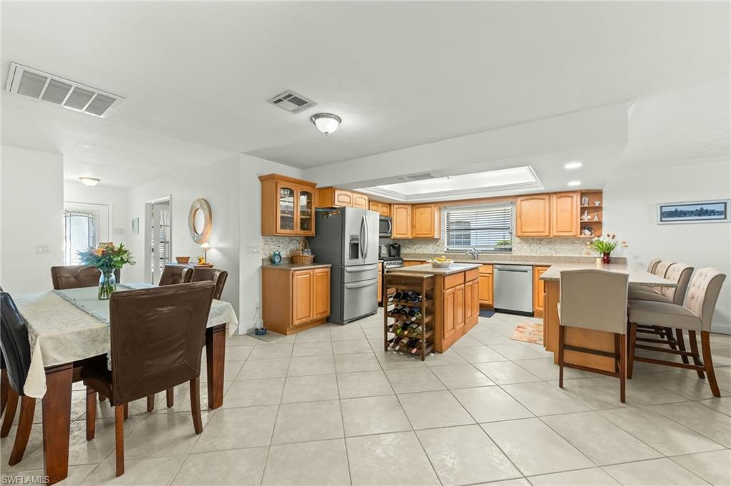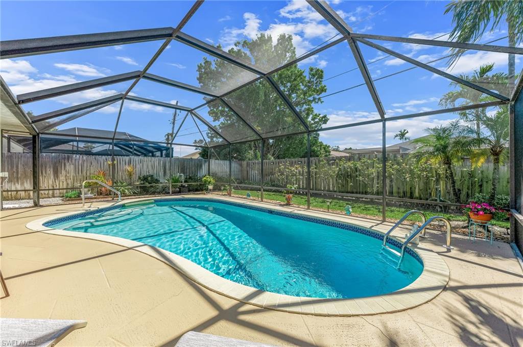 Welcome to Naples Park—where comfort, convenience, and coastal living come together in this beautifully maintained 3-bedroom, 2-bath home with a versatile den and a spacious two-car garage providing plenty of storage. Whether you’re seeking the perfect winter retreat, a smart investment property, or your own slice of paradise, this home checks every box. Freshly painted in 2024, the home is clean, bright, and move-in ready. The open-concept layout creates a welcoming atmosphere, ideal for both everyday living and entertaining. The updated kitchen (2013) features newer stainless steel appliances, a functional island for easy meal prep, and ample seating for gathering with family and friends. Relax in the spacious living room, highlighted by a custom gas fireplace and serene views of your private pool and lush tropical landscaping. The pool area is thoughtfully updated with a brand-new pool pump (2026), solar heating panels (2019), and a new pool light (2025)—perfect for enjoying evening swims year-round. The split-bedroom floor plan offers two generously sized guest bedrooms and an oversized guest bath. The large den provides flexible space for a home office, additional guest room, media room, or game room—tailored to your needs. Additional upgrades include: new roof (2020), new fence (2022), new bedroom carpet (2023), new sprinkler pump (2025), newer A/C unit (2017) and a Security system monitored by Reliable Security. This home had NO FLOODING during any of the past hurricanes. Located just 0.9 miles from the beach, you can bike or stroll to enjoy a beach day or the breathtaking sunsets along the Gulf. Naples Park is ideally situated near some of the area’s best shopping and dining, offering the perfect blend of tranquility and convenience. This is Florida living at its finest- schedule a showing today!