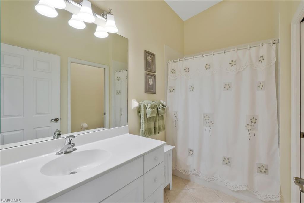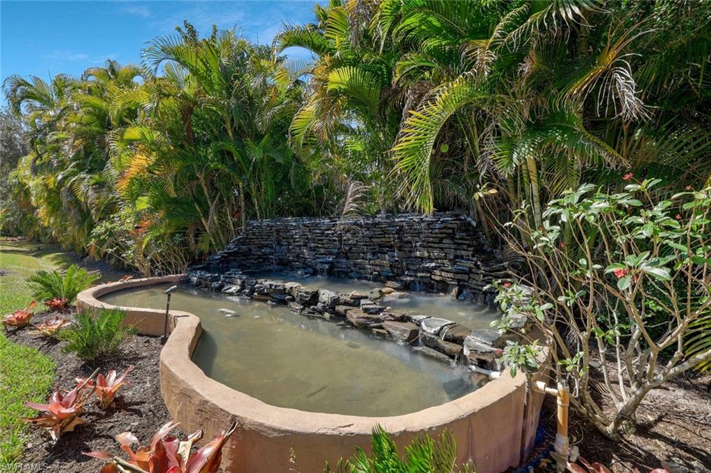 Welcome to the Magnolia Falls subdivision of Falling Waters Davis! As you enter you immediately notice the updated kitchen area featuring white matte finish raised profile cabinets, granite counters, stainless appliances and ceramic flooring. The split bedroom floor plan offers a spacious environment enhanced by 17' vaulted ceilings! The dining/living area, 13'x 29', offers a generous space to entertain, watch news or sports or just relax. Beyond this area is the large lanai, 11'x26', which has many upgrades, namely a summer kitchen featuring a second entertainment space with an upgraded summer kitchen that has lower and upper cabinets, granite counters, stainless beverage refrigerator, ss bar sink, and electric grill. Your guests will be able to enjoy the lush landscape and water feature while viewing the western sunset. The master suite has an elevated vanity with dual sinks and undermounted lighting and shower. The master bedroom has a vaulted ceiling and a glass slider for your view of the tropical setting. Guests and family can enjoy the front bedroom in privacy with access to the guest bath which has a vanity and tub and shower combo. A detached garage, 12'x24', not only for your vehicle but more space for storage. Falling Waters boasts having one of the largest resort pools in SW Florida, 11000 SF with saltwater filtration. Enjoy tennis, bocce and our clubhouse. Conveniently located to restaurants and markets in the neighborhood. Just a short 12minute drive brings you to all that Olde Naples with fine dining, shops and the white sand beaches of the Gulf!
