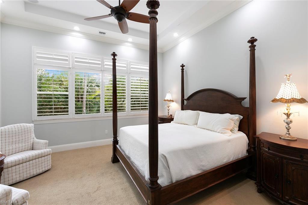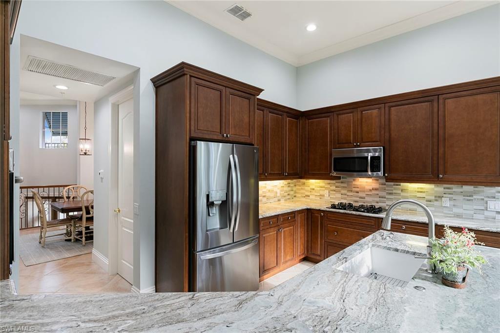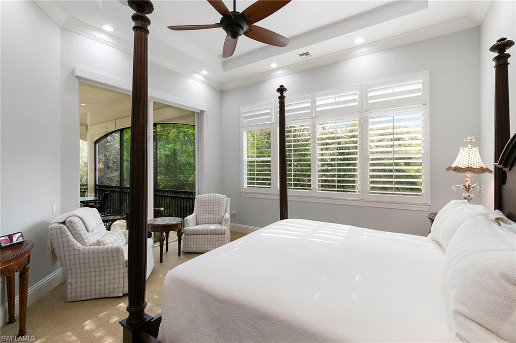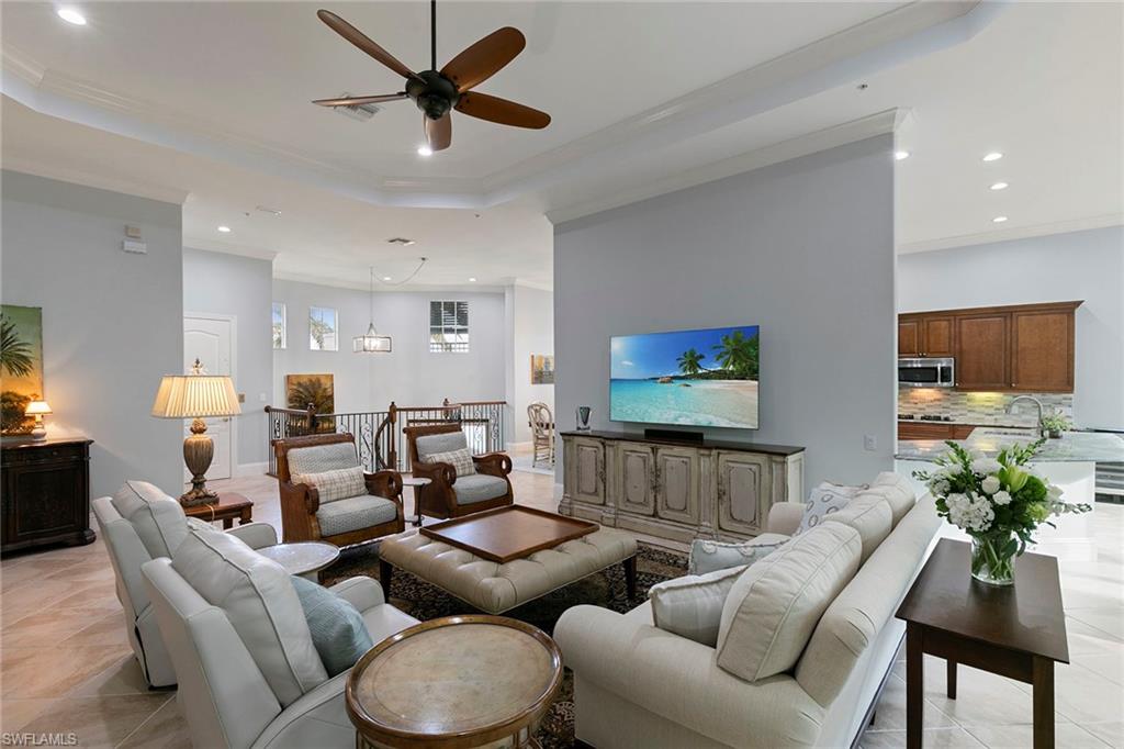 Immediate golf membership available. Designed for elevated living, this refined second-floor coach home in Calabria at Mediterra offers the rare opportunity for immediate golf membership and an effortless luxury lifestyle in one of Naples prestigious private communities. Encompassing 2,873 square feet of air-conditioned living space and 3,886 total square feet, the residence welcomes you with a gracious foyer framed by glass French doors and elegant tray ceilings. Thoughtful architectural details, including crown molding throughout, solid-core doors and enhanced recessed lighting, create a timeless foundation of quality and craftsmanship. The expansive great room is filled with natural light and seamlessly connects to the outdoors through 10-foot sliding glass doors, revealing tranquil preserve views that provide privacy and a lush backdrop year-round. The open design flows naturally into the kitchen, where stone countertops, a tile backsplash and a walk-in pantry complement a well-appointed suite of appliances. A wine refrigerator adds a sophisticated touch for effortless entertaining. The primary suite is a private retreat, enhanced by tray ceilings and direct lanai access through 10-foot sliders. The spa-inspired bath features dual vanities, a soaking tub, a frameless glass shower with listello tile detail and a generous walk-in closet. Two additional guest bedrooms provide comfort and privacy, while a dedicated office with wood flooring offers a refined work-from-home environment. Tile flooring extends throughout the main living areas and baths, with carpeting in the bedrooms for added comfort. Additional features include a private elevator, a two-car garage with epoxy flooring, custom window treatments, custom light fixtures, a 2022 hybrid water heater and two HVAC systems installed in 2022, providing efficiency and peace of mind. As a resident of Mediterra, enjoy a lifestyle defined by distinction. Membership includes access to two Tom Fazio-designed championship golf courses, a newly renovated private Beach Club along the Gulf of Mexico, resort-style pool and dining, state-of-the-art fitness facilities, tennis, pickleball and an active social calendar. Calabria offers an intimate neighborhood setting within this award-winning gated community. Enjoy toes in the sand and golden sunsets at Mediterra's fully renovated private Beach Club. Imagine arriving to have your car valet-parked and lounge chairs and umbrellas waiting for your arrival or set up upon your request. In award-winning community of Mediterra, you can have it all with 36 holes of Tom Fazio championship golf, Har-Tru tennis courts, pickleball, bocce and a new Sports & Lifestyle Center coming soon! Enjoy this thoughtfully crafted retreat where elegance, comfort and modern convenience are all just moments from Naples world-class beaches, dining and shopping. Begin enjoying the Mediterra lifestyle without delay.