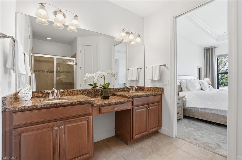 Welcome to your dream home! Conveniently located in beautiful Esplanade @ Hacienda Lakes, this spacious single family home boasts 3 bedrooms, 2 bathrooms, den with pocket doors and attached 2-car garage. Recently refreshed with a full interior repaint, giving the home a clean, bright, move-in-ready feel. The open concept floor plan is perfect for entertaining guests or relaxing with family featuring a seamless flow of indoor-outdoor living and entertaining. The interior has high-end finishes, plenty of natural light plus gas cooking. Step outside to your own private oasis, complete with a brand new salt water hot tub where you can unwind and enjoy the lakeview after a long day. **Room for a pool, can provide copy of survey. **The furniture is negotiable, so you can make this home truly your own. Additionally, newly installed electric hurricane shutters on the home and the CDD bond has been paid off, saving you money on your annual property tax bill. But the perks don't stop there - this home is located just steps away from a variety of amenities, including a community pool, spa and lazy swim loop, fitness center, tennis and pickleball courts, dog park, playground, resident grill area, fire pit, game room and more. Esplanade at Hacienda Lakes is situated in a prime location near some great restaurants, beaches, shopping, hospital and I-75. Whether you're looking for a peaceful retreat or a place to entertain friends and family, this home has it all. Don't miss out on the opportunity to make this your forever home!