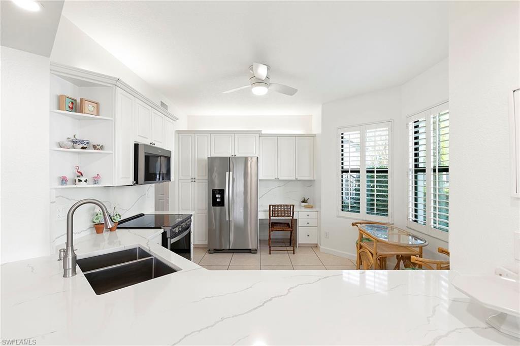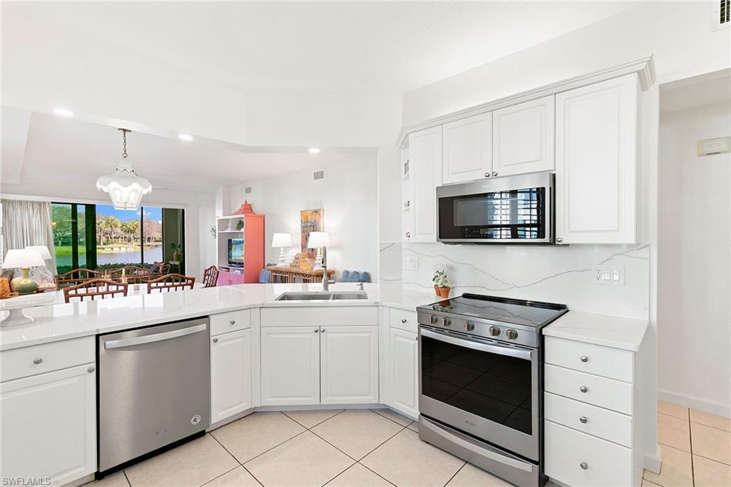 Welcome to Ravenna in Pelican Marsh, where everyday living feels effortless and beautifully put together. This fresh, first-floor coach home offers the ease buyers crave with no stairs, an attached one-car garage, and a calm, open view that immediately changes the mood. Inside, the residence is clean, bright, and move-in ready, with a smart 3-bedroom, 2-bath layout that flexes beautifully for guests, a dedicated office, or home gym/yoga/meditation room. The kitchen is crisp and updated with new quartz countertops, and the bathrooms have been refreshed, giving you that polished feeling without a renovation to manage. Impact windows and doors add peace of mind for storm season while keeping the home quiet and comfortable year-round. Open the sliders to enjoy wide lake and golf course views, the kind of backdrop that makes morning coffee and evening wind-downs feel like a daily upgrade. Tucked within Ravenna and moments from Pelican Marsh's renowned amenities, shopping, dining, and top medical and business hubs, this is a rare blend of convenience, privacy, and easy Naples living.Slide the lanai doors open to enjoy wide lake and golf course views, the kind of backdrop that makes morning coffee and evening wind-downs feel like a daily upgrade. Tucked within Ravenna and moments shopping and dining at Mercato, and top medical and business hubs. Pelican Marsh amenities include an active lifestyle center with a gym, tennis, pickleball, bocce and more clubs and social activities than you could dream of. This Ravenna coach home is a rare blend of convenience, privacy, and easy Naples living.