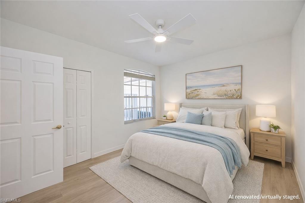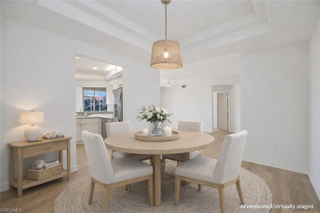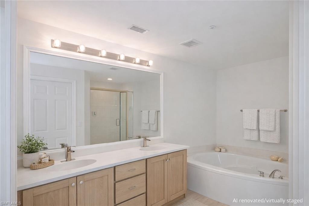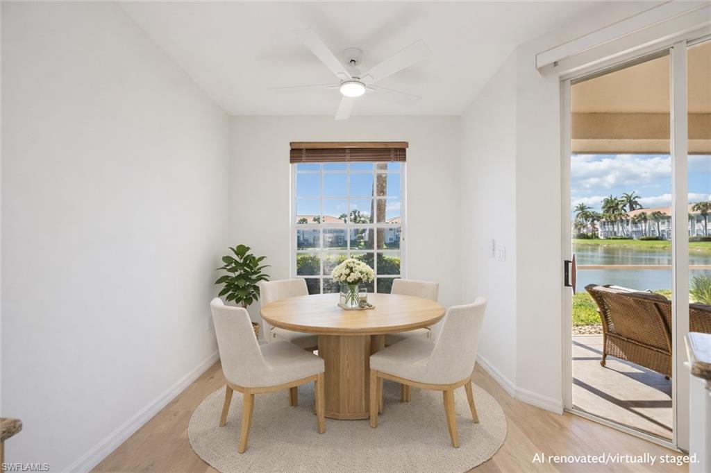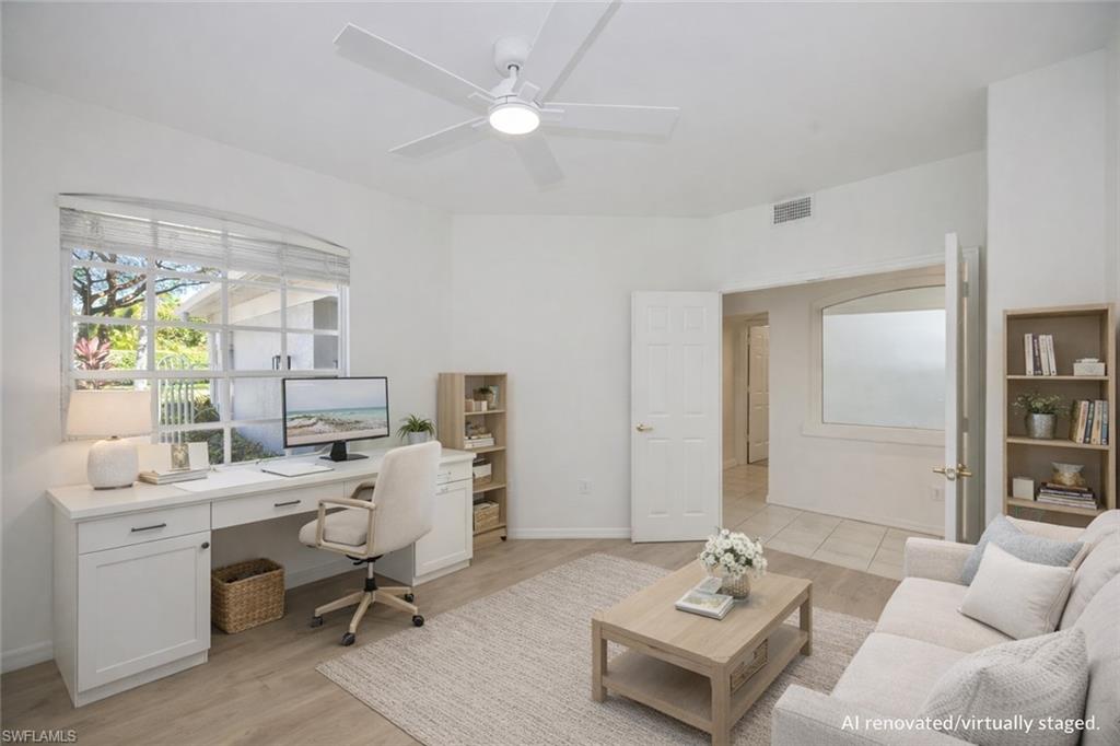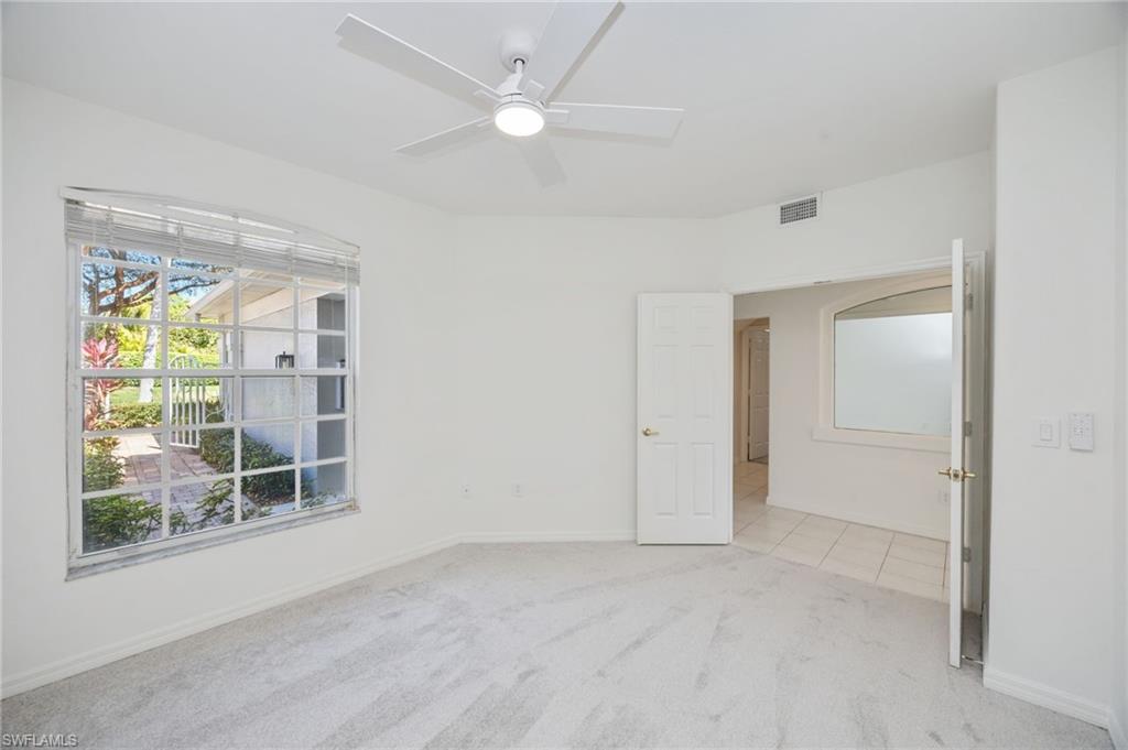LOWEST-PRICED RESIDENCE IN PELICAN MARSH at time of listing! Perfect for year-round living or a seasonal Southwest Florida retreat. Located in the prestigious gated golf course community (golf is optional) of Pelican Marsh, this well-maintained lakefront first-floor 2 bedroom plus den (or 3rd bedroom) condo offers privacy, convenience, and resort-style amenities. Ideally situated with four gated entrances and easy access to the renowned shopping and dining district of Fifth Avenue South, Mercato and Bonita Springs, as well as the beautiful Gulf beaches. Enjoy desirable southern exposure and peaceful lake views from your screened lanai, and enjoy that there are no residences directly across the street, providing added privacy. The residence features a private gated courtyard entry, spacious great room floor plan, updated kitchen with wood cabinetry, granite countertops and stainless steel appliances, breakfast nook plus formal dining area, split-bedroom layout, guest bedroom with new carpet, den/home office with French doors, and a primary suite with dual sinks, a soaking tub, separate shower, two walk in closets and private lanai access. Additional highlights include an in-residence laundry room with upper cabinetry, attached one-car garage, fresh interior paint, new ceiling fans, and a new water heater (2025). Situated within Arielle, residents enjoy a private community pool plus full access to Pelican Marsh amenities, including 8 lighted Har-Tru tennis courts, 6 pickleball courts, fitness center, bocce, scenic walking and biking trails, pro shop, on-site activities director, and the Courtside Bar & Grill. An exceptional opportunity to own in one of Naples’ most desirable communities at an outstanding value. Arielle allows 3 rentals per year (with a 30 day minimum for each rental) after the first year of ownership. They allow two domestic pets of any size (no pit bulls). One or more photo(s) has been virtually staged, AI generated or rendered.