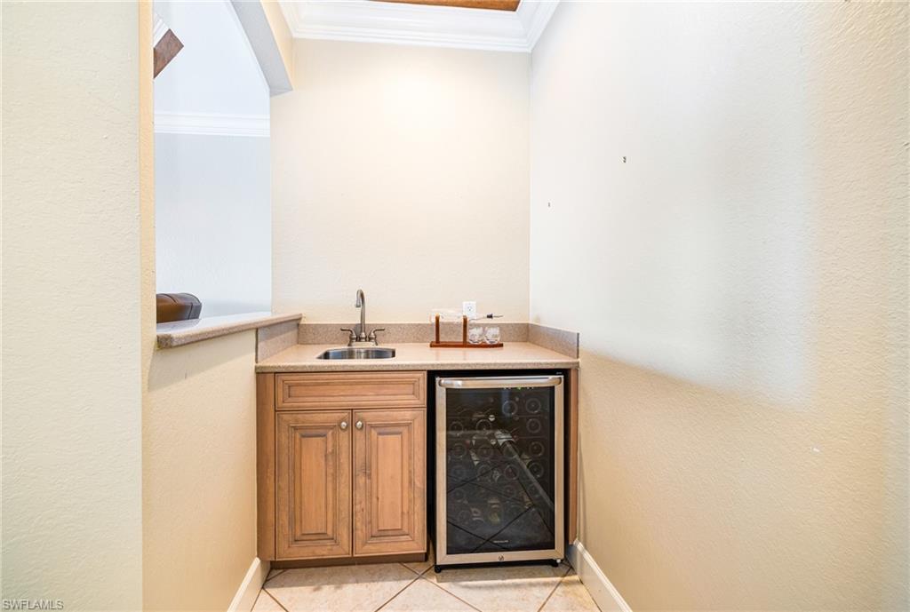 One or more photo(s) has been virtually staged, AI generated or rendered. Soak up postcard-worthy southern exposure from this first-floor end unit in Merano at The Colony at Pelican Landing, featuring 3 bedrooms, 2.5 baths, and a private 2-car garage—plus a front-row, unobstructed view of the lake and the Colony golf course that never gets old. Inside, classic crown molding, tray ceilings, and diagonal tile set a polished tone, while expansive sightlines pull the outdoors in from the great room, kitchen, morning room, owner’s suite, and guest spaces—then open to a generous lanai where sunrise coffee and sunset cocktails come with water-and-fairway scenery. The kitchen is crisp and timeless with stainless appliances, custom cabinetry, and a tumbled-tile backsplash, and the nearby morning room is the kind of spot you’ll actually use every day. When it’s time to entertain, you’re covered with a formal dining room and full wet bar complete with prep sink and wine cooler, and the owner’s retreat finishes strong with an oversized shower, separate soaking tub, and beautiful cabinetry. Merano has recently elevated the neighborhood with new roofs, updated exterior paint, and new lighting, and it’s known for some of the lowest condo HOA fees in The Colony while not being subject to the new milestone reporting requirements. Amenities are where this lifestyle truly separates itself: Merano residents enjoy a community pool and spa, pavilion, and a small gym, and Pelican Landing residents enjoy a tennis center with 12 Har-Tru courts, a fully equipped fitness center, pickleball, bocce, a kayak/canoe park, a lively community center, three fishing piers, a butterfly garden, plus a marina on Estero Bay with sailboats and kayaks and even complimentary sailing lessons—capped off by the crown jewel: Pelican Landing’s private 34-acre Gulf island beach park with sugar-sand shoreline accessed by shuttle boat. Optional memberships are available for those who want to add golf at The Colony Golf & Country Club and Pelican’s Nest, along with The Colony’s private Bay Club for waterfront dining—schedule your private showing today and come see why this view, this location, and this lifestyle are so hard to beat.