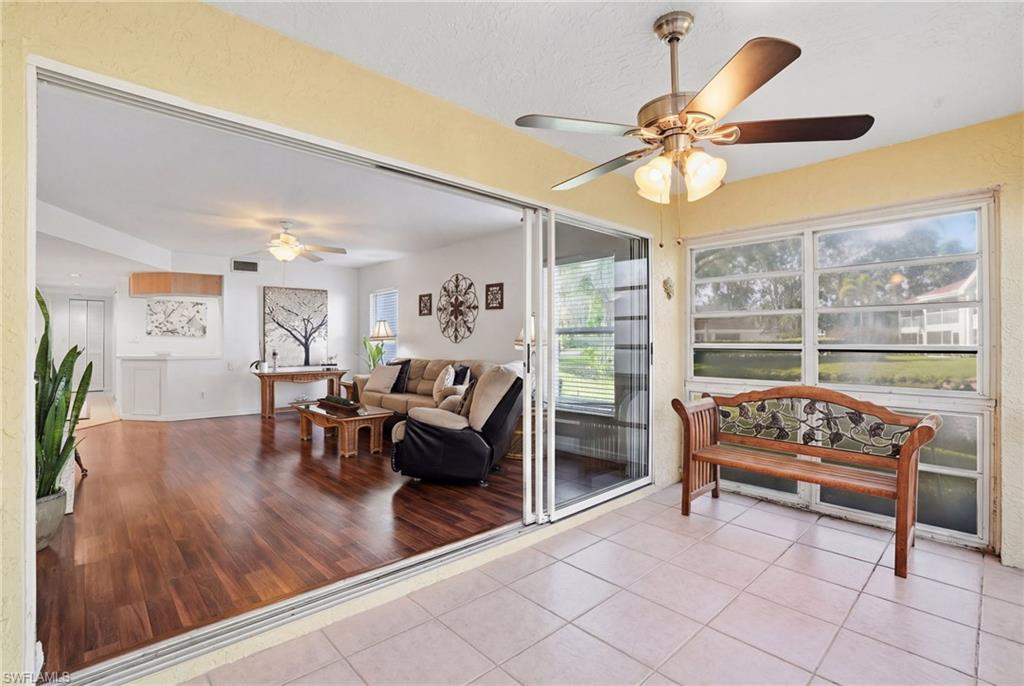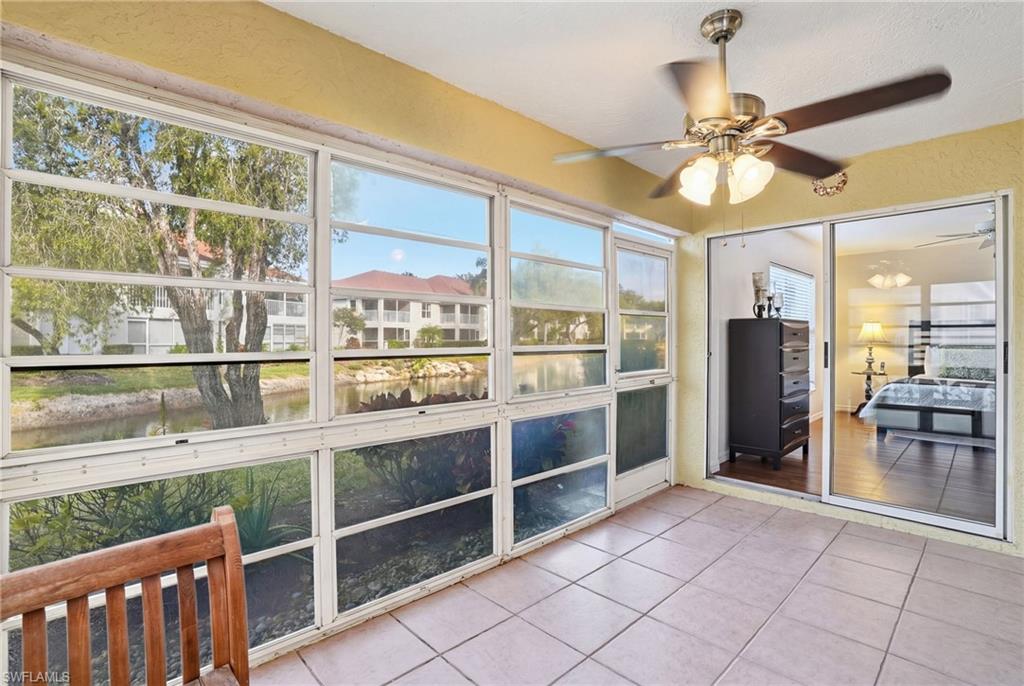 Rarely available 1st-floor end unit in Crestview with panoramic views! This highly desirable 3-bedroom, 2-bath condo offers just under 1,500 square feet of light-filled living space, with additional windows that only an end unit can provide. The spacious split floor plan is designed for both comfort and privacy, featuring no carpet throughout for a clean, modern feel. The newly remodeled primary bathroom adds a luxurious touch, while the in-unit laundry provides everyday convenience. Enjoy peaceful lake, water feature, and lush landscaping views from the enclosed Florida room with western exposure — the perfect spot to relax and take in Southwest Florida’s stunning sunsets. Complete with a one-car detached garage and ideally located just minutes from Naples’ world-class beaches, shopping, dining, and entertainment, this home offers the perfect blend of comfort, style, and prime location. Whether you’re searching for a full-time residence, seasonal retreat, or investment opportunity, this one truly checks all the boxes — a one-of-one opportunity to make this condo your own!