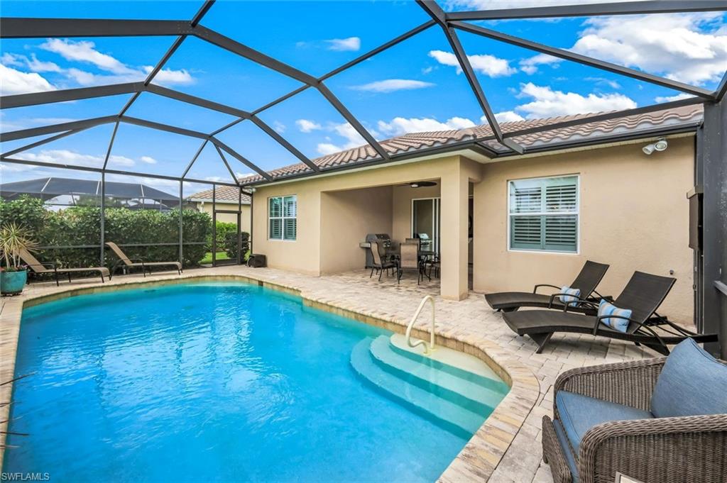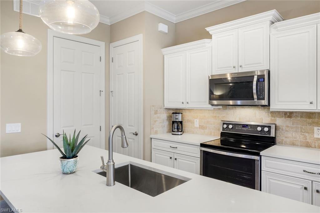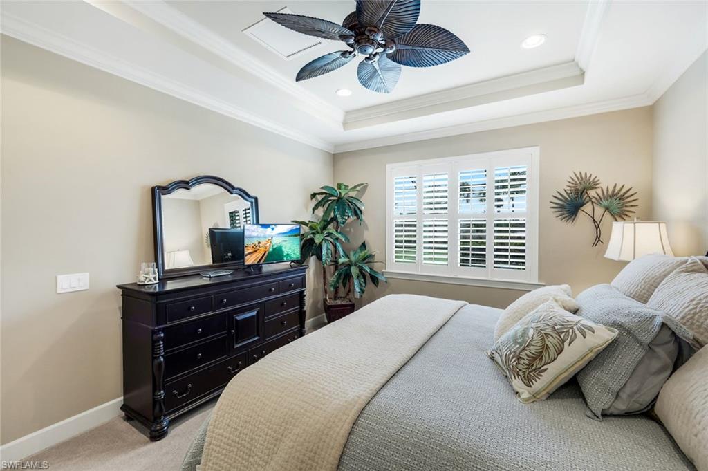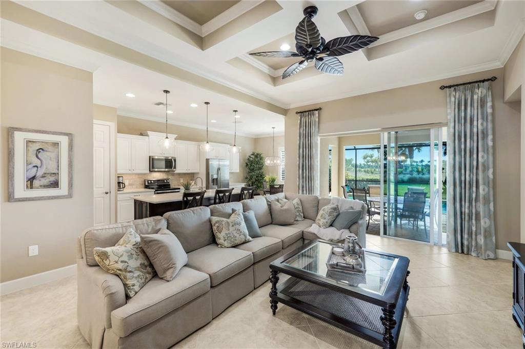 Enjoy stunning Naples sunsets from your private lanai in this beautifully maintained lakeview home in The Quarry. With coveted western exposure and views of Stone Lake, this 3-bedroom plus den/flex room/or 4th bedroom, 2-bath residence offers nearly 2,000 square feet of thoughtfully designed living space and a spacious 2-car garage. The outdoor living area features a large yard and tranquil water views—an ideal setting for relaxing evenings or entertaining guests while taking in Southwest Florida’s famous sunsets. Inside, the light-filled kitchen is designed for both everyday living and entertaining, showcasing white cabinetry with a contrasting espresso island, quartz countertops, and stainless-steel appliances. The open layout flows seamlessly into the main living areas, where diagonal tile flooring, crown molding, tray ceilings, and upgraded lighting add style and character throughout the home. The spacious primary suite offers a peaceful retreat with tray ceilings, crown molding, and an inviting atmosphere designed for comfort and relaxation. A flexible den provides additional space for a home office, reading room, or hobby area. Located within close proximity to The Quarry’s Beach Club, residents enjoy easy access to one of Naples’ most sought-after lakefront lifestyle communities. The Quarry spans more than 500 acres of navigable lakes, offering opportunities for boating, kayaking, paddleboarding, jet skiing, and fishing. The Beach Club features a resort-style pool, lap pool, spa, tennis, pickleball, and bocce courts, a restaurant, a tiki bar with poolside food and beverage service, a modern wellness center, and a full-time activities director who coordinates social events throughout the year. Optional golf membership is available at The Quarry Golf Lodge, home to the Hurdzan-Fry designed 18-hole championship course, allowing residents to enjoy the golf experience without obligation. This move-in-ready home offers lake views, western sunsets, and convenient access to The Quarry’s resort-style amenities—an exceptional opportunity to enjoy the Southwest Florida lifestyle in one of Naples’ premier lakefront communities.