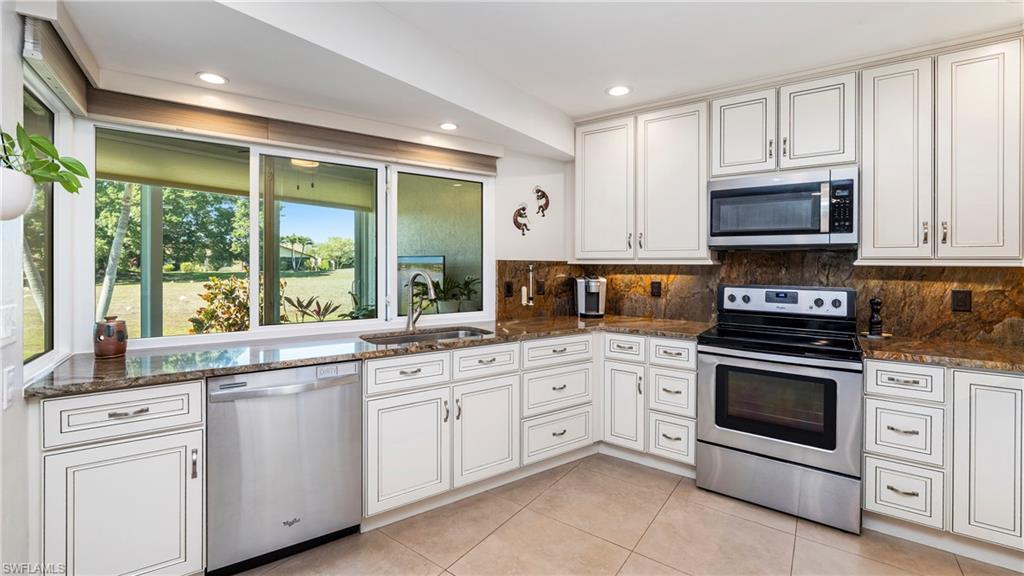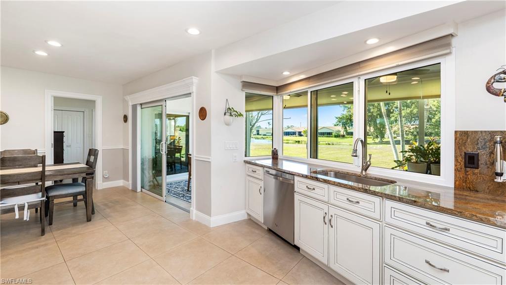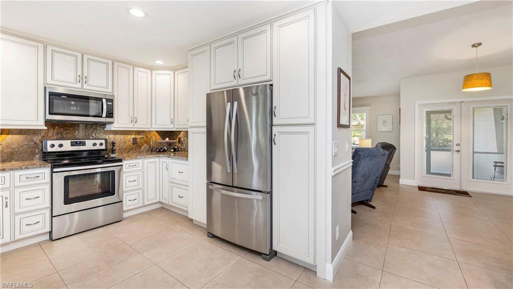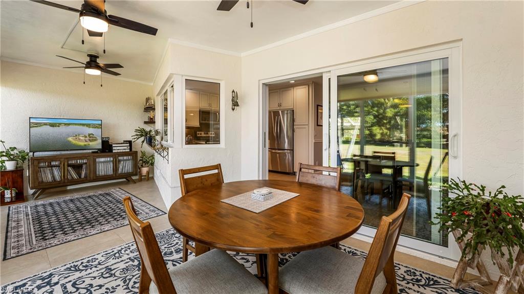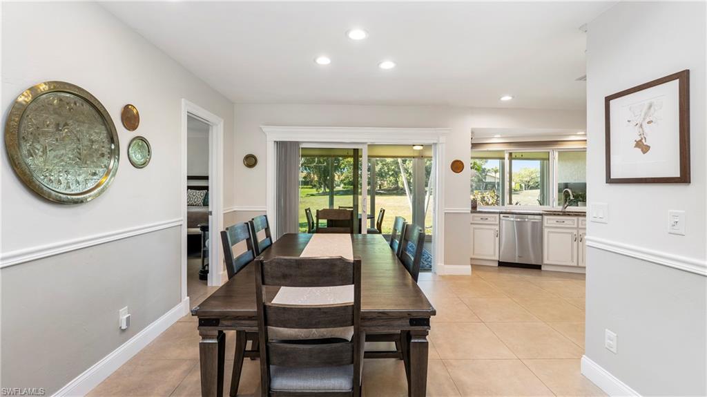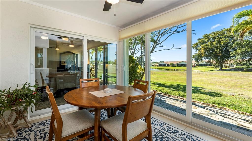 Beautifully maintained villa reflecting true pride of ownership. Immaculately clean and thoughtfully designed, this open floor plan features an inviting breakfast bar and a brand-new glass-enclosed lanai (2025) just off the dining area and eat-in kitchen — perfect for year-round enjoyment. The oversized living room showcases vaulted ceilings and tasteful décor, creating a bright and welcoming atmosphere. Enjoy peace of mind with a new A/C (2024) and low-maintenance living, as the association fees cover exterior care. An attached garage with a private driveway adds convenience and functionality. Located within Lakewood Country Club, residents have the option to join the social membership, offering access to a community pool, tennis courts, and on-site dining. Just minutes from the pristine beaches, fine dining, and upscale shopping of Old Naples, this home delivers the very best of the Naples lifestyle. Situated in a quiet, friendly, and safe community — come experience it for yourself.