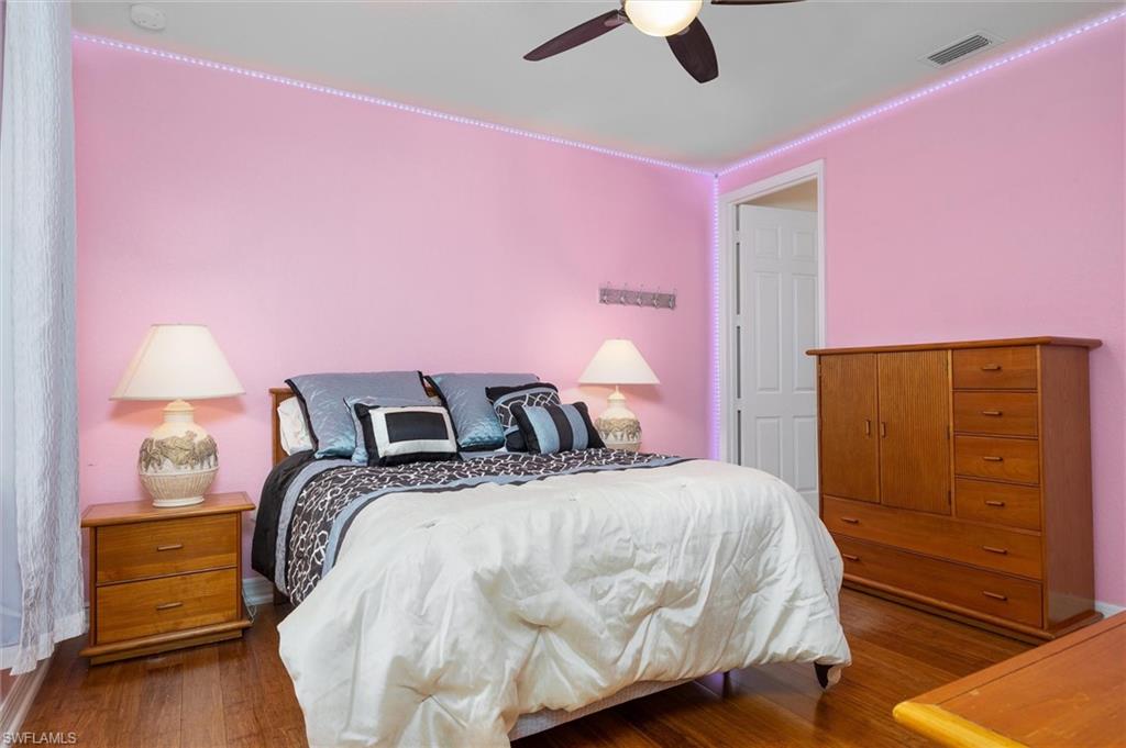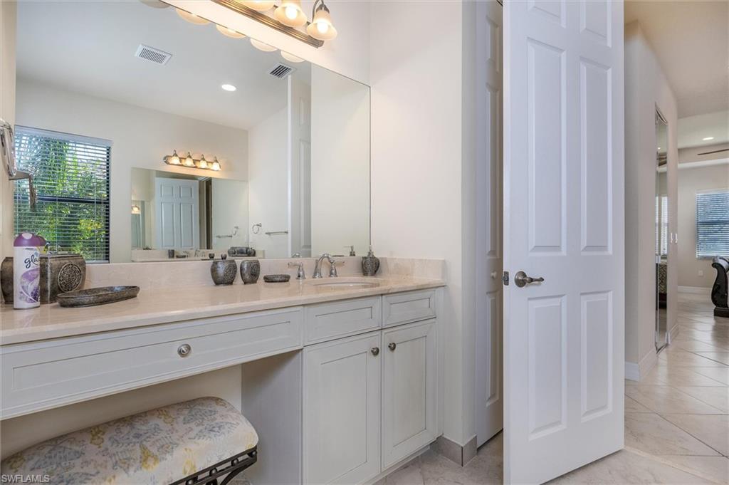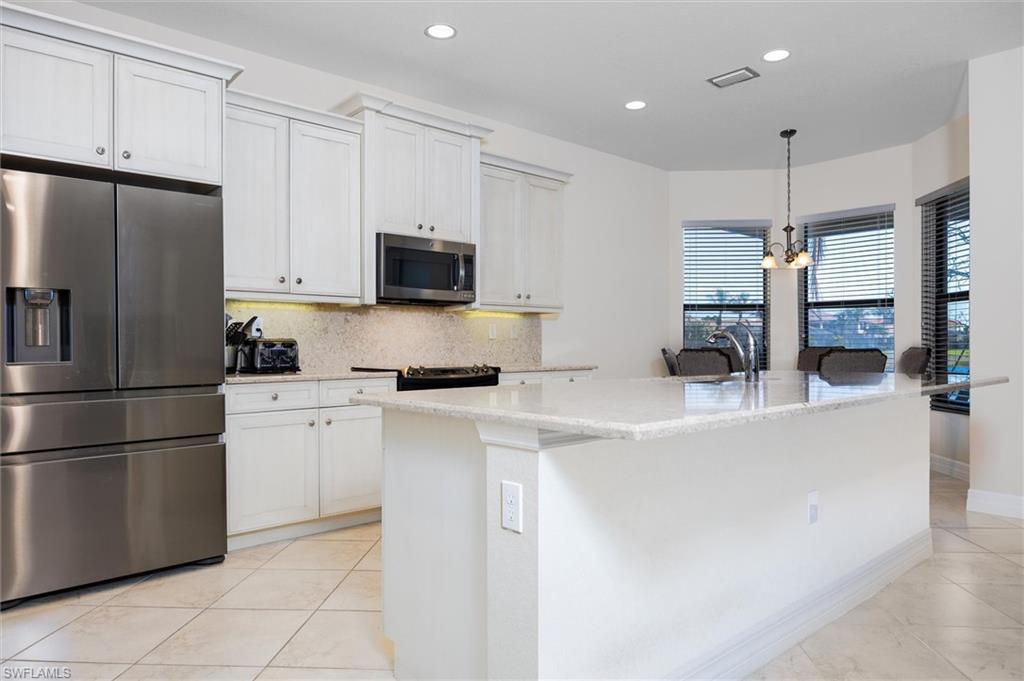 Versatile “Merlot” floor-plan has 5 bedrooms and 4 baths located on a cul de sac street, lake views & lush landscaping. Spacious kitchen open to the family room with granite topped counters, stainless steel appliances, smooth top range, stainless steel sinks, & warm tone cabinetry. Features include neutral tile flooring in kitchen, passageways, & baths, carpet in bedrooms, sliding doors to screened patio, & granite topped bath vanities. Large master bedroom and a luxurious master bath, step in shower, corner Roman tub, and two generous walk-in closets