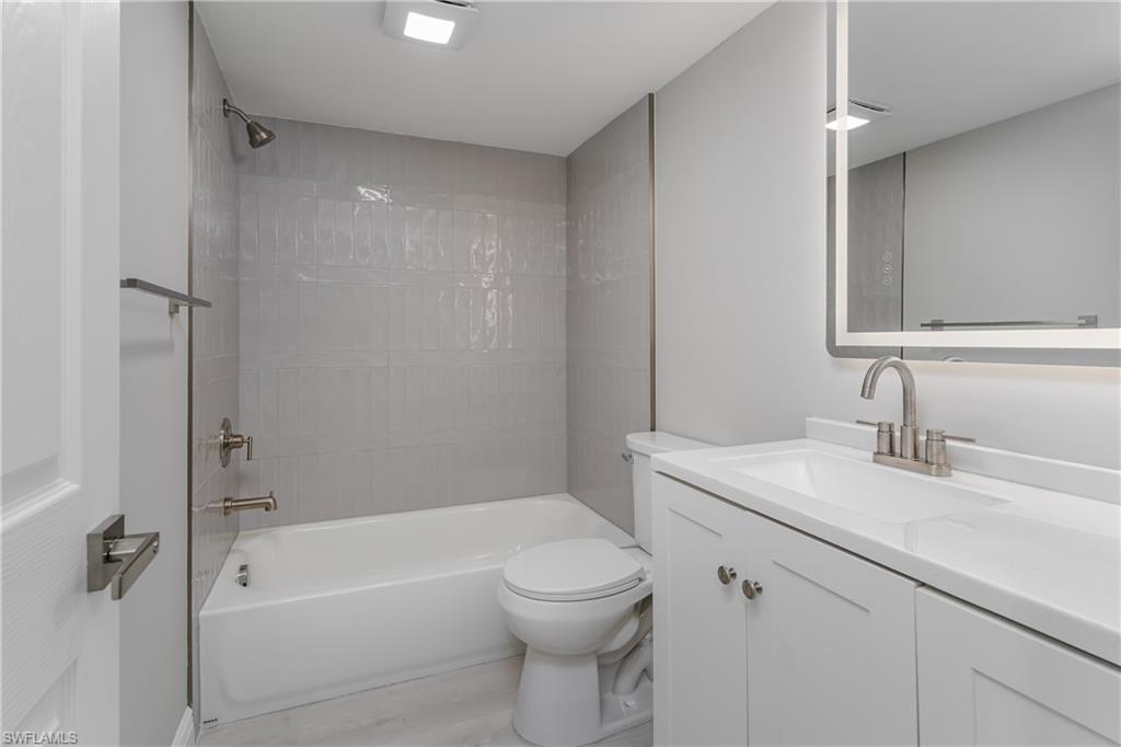 Completely Renovated!! Every square inch of this unit has been remodeled!! New high end cabinets a spice rack and a lazy Suzan inside the corner cabinet! Beautiful Quartz Counter tops and back splash!! High end SS appliances. Beautiful high end vinyl flooring throughout the unit along with custom base boards, fresh paint and recessed lighting throughout!! Tastefully designed uniform hardware throughout the unit (including door hinges)!! New door frames, new high end doors and all new windows and sliders!! All new fans and lighting!! The unit has a carport assigned!! 2023 Water heater. The community pool is a short walk from the unit (heated during the winter). Only 10mins to the beach and only 5 mins to Publix and restaurants!! 55+community. Seller motivated!