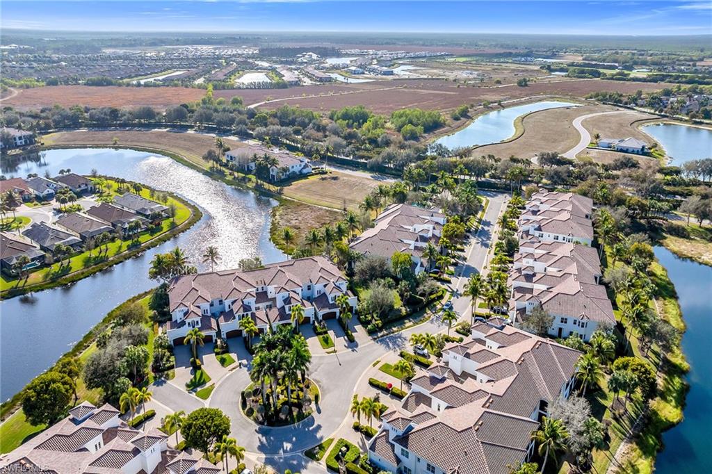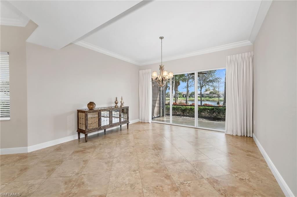 Enjoy serene lake views and desirable eastern exposure with beautiful sunrise skies in the sought-after Callista enclave in Fiddler’s Creek. This first-floor three-bedroom, three-bath residence offers an inviting floor plan enhanced by refined finishes and a seamless indoor-outdoor connection. Neutral paint tones, updated light fixtures, crown molding and tile flooring set on the diagonal throughout main living areas create a bright and cohesive interior designed for comfortable everyday living and effortless entertaining. The open and airy living room captures tranquil lake views and flows directly to the screened lanai through sliding glass doors, extending the living space outdoors. Crown molding and diagonal tile flooring continue the polished aesthetic. The dining room, just off the kitchen, also enjoys peaceful water views and lanai access, with a hanging light fixture adding a stylish focal point. The kitchen blends timeless design and functionality with white cabinetry, a tile backsplash, under-cabinet lighting, and a convenient two-seat bar for casual dining. GE Monogram stainless steel appliances include a wall oven, microwave, and gas cooktop with hood, offering performance and elevated style. The primary suite is a relaxing retreat featuring wood-look ceramic tile flooring, crown molding, a hanging light fixture, and private lanai access overlooking the lake. Two walk-in closets with custom built-in drawers and shelving provide generous storage. The en-suite bath includes a double vanity, glass-enclosed shower, large soaking tub, and water closet for added privacy. Guest accommodations are thoughtfully arranged for comfort and flexibility. One guest bedroom offers crown molding, a walk-in closet with custom built-ins, and an en-suite bath with glass-enclosed shower. The second guest bedroom features crown molding and an updated light fixture, with a nearby hall bath showcasing a frameless glass shower. Outdoor living is highlighted on the expansive screened lanai, where eastern exposure welcomes gentle morning sun and calming lake views. Multiple seating areas provide space to relax or entertain, complemented by a ceiling fan and electric shutters for added convenience and storm protection. Additional features include a laundry room with GE washer and dryer, utility sink, above-cabinet storage and a tankless water heater for enhanced efficiency. The CDD is paid in full. Residents enjoy an award-winning, gated community with outstanding amenities, including a resort-style pool, updated Gator Grille for poolside casual dining, Caxambas for fine dining and an active pickleball program with 10 courts. The clubhouse also offers fitness with classes, spa services, tennis with clinics and leagues, and an extensive activity and event calendar with something for everyone. Optional memberships provide access to the highly regarded championship course, new golf clubhouse, marina and beach club.
