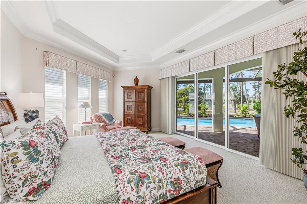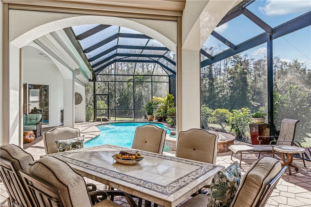 If you desire spectacular lake, golf & preserve views from your picture window style screened lanai at the end of a private cul-de-sac in a prime golf community with southern exposure-this is it! This quality custom home is larger than many in Wildcat Run, with 3650 sq. Ft. under air, 4 BR + den & 4 1/2 baths. The easily flowing floor plan has so many features you will love! Set on almost a half acre, it has a 3 car garage, electric & solar pool w/spa, long lanai w/Weber grill + a built-in hood & exhaust, perfect for entertaining, an open kitchen w/soft granite countertops, S.S. appliances & light cabinetry with a wine cooler in a nearby hall, home generator + impact glass & electric storm shutters, tray ceilings, crown molding, inside & out speakers, large miter glass window to embrace the scenic views, an attractive stone on the family room wall w/electric fireplace & TV, den/study w/built-in cabinetry, custom walk-in closets in Main BR, work bench + cabinets & an air conditioned storage room in the garage + a 2nd refrigerator. The outside of the home has been repainted, the drapery is warm & the location is quiet yet not too far from Wildcat Run’s beautifully updated clubhouse + 2nd “grill room” style building. All in an Arnold Palmer designed signature golf course community, one of the best in SW Florida, with a great location near Miromar Outlets shopping centers , FGCU, the airport, Hertz Arena, hotels, restaurants & much more!