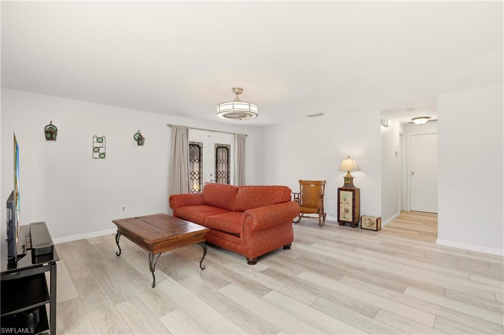 Beautifully updated and freshly painted 3 bedroom, 2 bathroom home located on a wide canal in Golden Gate City. This property offers peace of mind with a new roof, updated plumbing connection to city water, new ductwork, brand-new attic insulation for year-round comfort and lower utility bills, and wood look plank flooring throughout. All windows and doors have been upgraded to hurricane impact for added protection and energy efficiency. The home also features a 2 car garage plus an additional carport for extra covered parking, along with a privacy fence that makes the backyard ideal for pets, kids, or simply relaxing outdoors. Enjoy waterfront views from your backyard along a large canal, offering extra privacy and space to unwind. Move-in ready with the major improvements already completed.