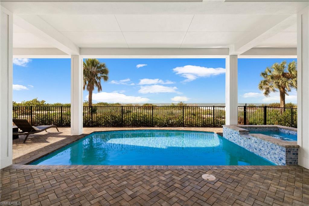 Four-bedroom, four-and-a-half-bathroom Potter beachfront estate on the highly coveted south end of Fort Myers Beach—introducing one of the last true legacy opportunities along prestigious Estero Boulevard. Expertly built by Potter Homes, this coastal masterpiece blends timeless architecture with modern updates and irreplaceable direct private beach access. From the moment you arrive, the gated entry and expansive front lawn create a grand first impression—an uncommon feature on the beachfront. Lush, one-of-a-kind tropical landscaping frames the residence, delivering exceptional curb appeal and privacy rarely found along Estero Boulevard. Inside, the spacious and thoughtfully designed layout offers both elegant entertaining spaces and relaxed coastal living. Expansive windows invite natural light and Gulf breezes, while multiple en-suite bedrooms ensure comfort and privacy for family and guests alike. Recent enhancements include a new metal roof and a beautifully resurfaced lower-level pool deck, where a private jacuzzi and generous outdoor living areas create a resort-style retreat just steps from the sand. Whether hosting sunset gatherings or enjoying quiet mornings by the water, the setting is nothing short of extraordinary. Zoned for weekly rentals, the property also offers strong income potential—making it equally compelling as a primary residence, luxury second home, or investment opportunity. The generous floor plan and premier location position it perfectly for those seeking both lifestyle and flexibility. Ideally situated within walking distance to Santini Plaza’s reimagined dining and boutique shopping, and just a short drive to Bonita Springs, Naples, and Southwest Florida International Airport, this south-end location offers convenience without sacrificing serenity. This is more than a home—it is one of the final opportunities to secure a true beachfront legacy property on Estero Boulevard.