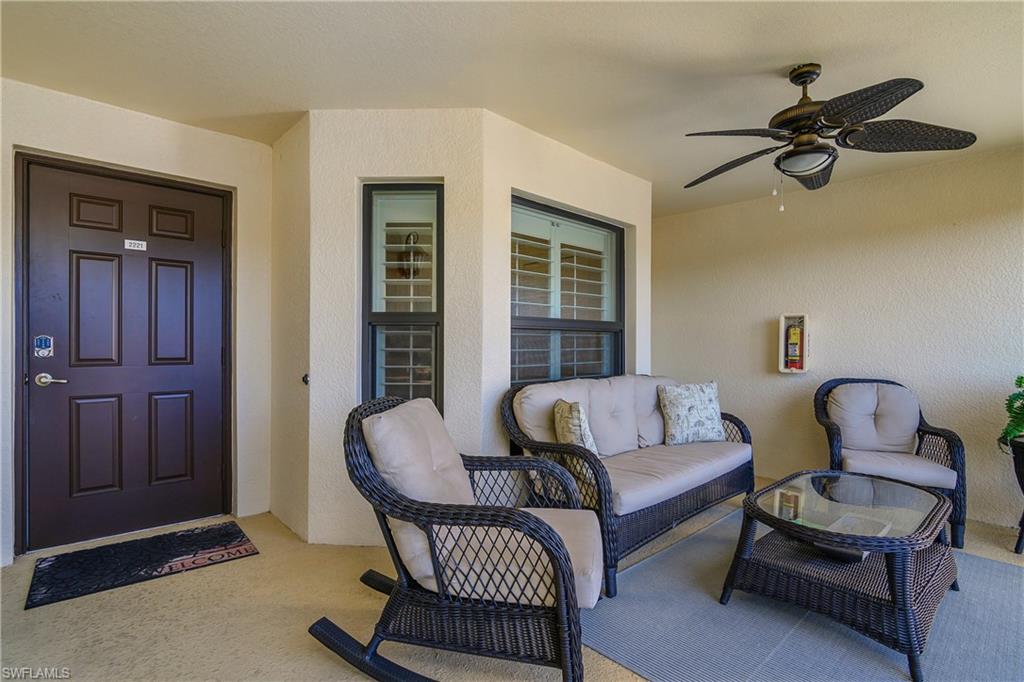 Welcome to 9517 Avellino Way #2221 in Treviso Bay, a beautifully appointed second-floor corner veranda offering one of the most desirable floor plans in this premier Naples, Florida resort-style community. With 2 bedrooms plus a den, 2 full bathrooms, and 1,661 square feet of living space, this turnkey-furnished residence combines spacious design, abundant natural light, and effortless coastal elegance—complete with a social membership. As a corner unit, this home enjoys enhanced privacy and additional windows that fill the space with natural light, creating a bright and airy atmosphere throughout. The expansive great room layout is one of the standout features of this model, offering generous living and dining areas that flow seamlessly into the kitchen—ideal for entertaining guests or enjoying relaxed everyday living in paradise. The kitchen is both functional and inviting, with ample cabinetry, abundant counter space, and an open design that keeps you connected to the main living area and views beyond. The den provides flexible space for a home office, reading nook, media room, or additional guest accommodations. It is currently set up as an extra bedroom, perfect for visiting family and friends. The split-bedroom floor plan ensures privacy, with a spacious primary suite that offers comfort and tranquility, while the guest bedroom and bath create a welcoming retreat for visitors. As a second-floor veranda, this residence features both a front and rear screened lanai, allowing you to enjoy Florida’s indoor-outdoor lifestyle year-round. Whether sipping morning coffee in the front or unwinding in the back with peaceful community views, the dual outdoor living spaces are a defining feature of veranda living in Treviso Bay. Treviso Bay is one of Naples’ most sought-after gated communities, known for its world-class amenities and vibrant lifestyle. With a social membership, residents enjoy access to the stunning Club Rilassare resort-style pool with waterfalls and lap lanes, poolside restaurant and bar, state-of-the-art fitness center, aerobics studio, and full-service spa. The community also offers tennis courts, pickleball courts, bocce ball, scenic walking and biking trails, and a robust social calendar filled with events and activities throughout the year. The main clubhouse offers additional dining options, a social activities room, library, and exceptional views of the TPC golf course (available to social members May - October). Located just minutes from downtown Naples, Fifth Avenue South, Marco Island, and the white-sand beaches of the Gulf of Mexico, 9517 Avellino Way #2221 offers the perfect blend of luxury, convenience, and lifestyle. Whether you are searching for a full-time residence, seasonal retreat, or investment opportunity in Naples real estate, this turnkey corner-unit veranda in Treviso Bay delivers the space, comfort, and resort-style living buyers are looking for.