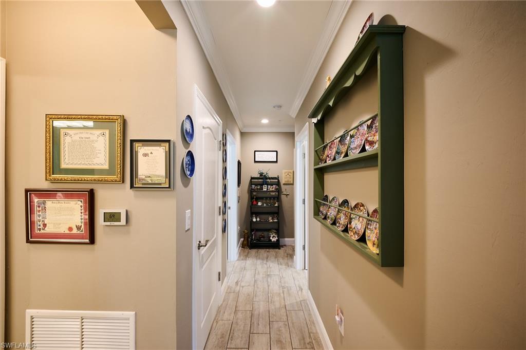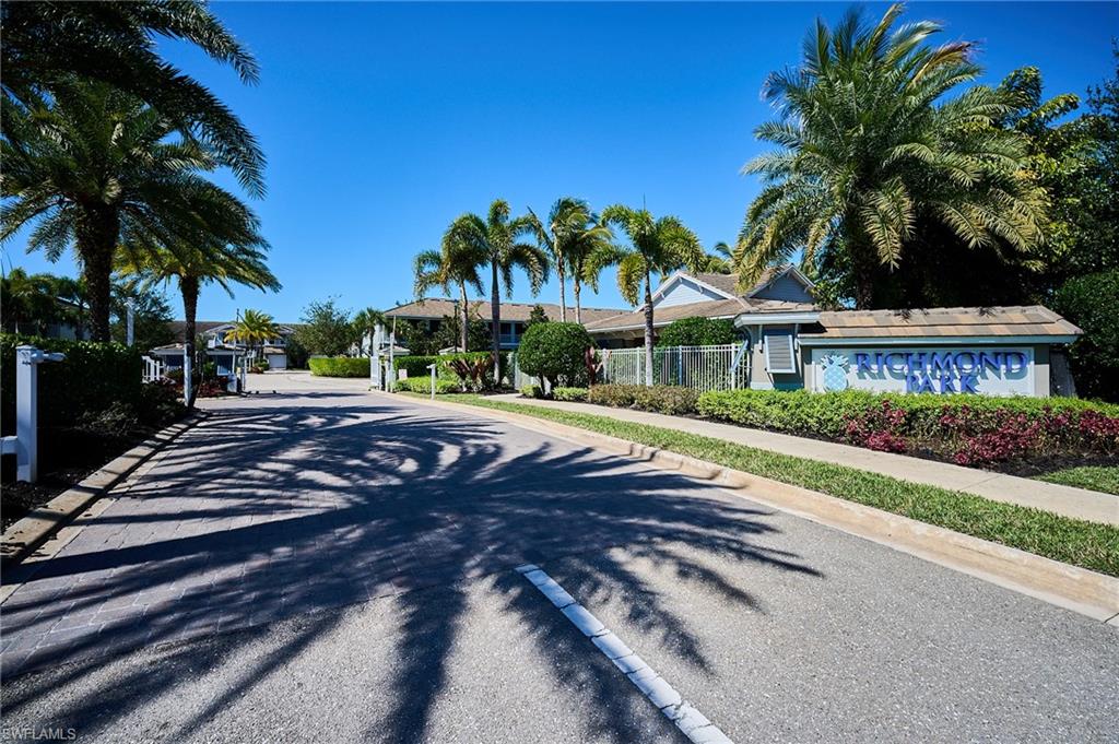 Wake up to soft morning light and end your days with glowing Naples sunsets in this beautifully maintained first-floor carriage home in the gated community of Richmond Park in North Naples. This inviting two-bedroom, two-bath end-unit residence with an attached garage offers an effortless blend of comfort and style. The open layout feels airy and welcoming, with a spacious kitchen designed for gathering — featuring a large island, abundant storage, and a walk-in pantry that keeps everything neatly tucked away. The kitchen flows naturally into the living area, where custom built-ins and soft blue accent walls create a relaxed, coastal atmosphere. But the true heart of this home is the oversized screened lanai. Expansive and beautifully positioned with peaceful western lake views, it becomes an extension of your living space — perfect for morning coffee, quiet reading, sunset wine, or hosting friends in the gentle Florida breeze. With custom shades and a ceiling fan, this outdoor retreat is designed for year-round enjoyment and effortless indoor-outdoor living. Thoughtful updates throughout — including wood-look tile flooring in the main areas, designer ceiling fans, and contemporary lighting — add a fresh, polished feel while maintaining warmth. The primary suite is a serene escape, complete with a tray ceiling, generous walk-in closet, and a spacious bath with a glass-enclosed shower — your own private sanctuary at the end of the day. Residents of Richmond Park enjoy a beautifully landscaped setting with access to a clubhouse, pool, and sundeck — all just minutes from the vibrant dining and shopping at Founders Square and a short drive to the white sands of Vanderbilt Beach. This is more than move-in ready — it’s a home designed for slowing down, soaking in the views, and truly living the Naples lifestyle.