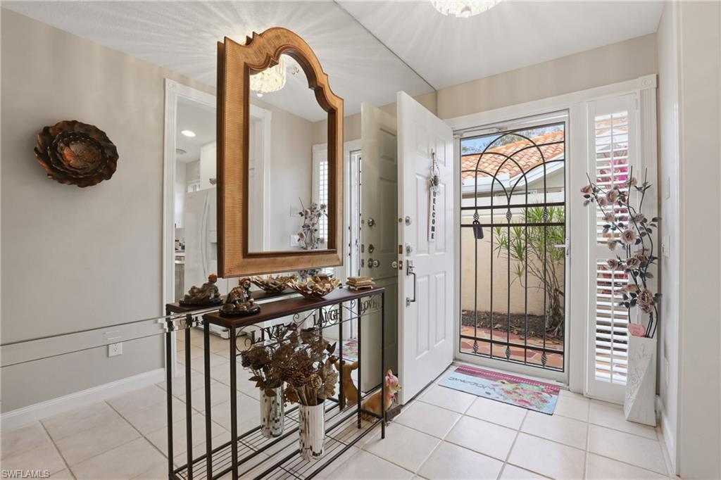 Live the Naples lifestyle — WELCOME to your dream home! FALL IN LOVE with this exceptional North Naples Villa. Nestled in the highly sought-after community of Village Walk. Located on a quiet cul-de-sac street, this seldom- available Regent model offers 3 bedrooms, 2 bathrooms, a 2-car garage, and an extended floor plan with over 1,800 square feet of interior space. The home features a glassed-in lanai with heating and cooling, ceramic tile flooring throughout main living areas and laminate wood flooring in the bedrooms. Additional highlights include upgraded decorative door trim throughout , 2 pantries, white kitchen cabinetry and walk-in closets. Roof replaced in 2018, Outdoor features include a large screened patio, electric hurricane shutters, garage screen protector, decorative electric lighting on exterior, privacy wall, stone-stamped concrete driveway and serene eastern lake views. Village Walk offers a vibrant lifestyle offering resort-quality amenities, including an on-site restaurant with lakeside patio, heated resort and lap pools, tennis, pickleball, bocce, a fitness center, walking and biking paths. Miles of walkways wind around lakes and over canals with Venetian style bridges. Conveniently located just a short drive to Tiburon Golf Club, Vanderbilt beach and the shops and dining at Mercato. HOA fees include landscaping, cable and internet. Don't miss this exceptional opportunity!