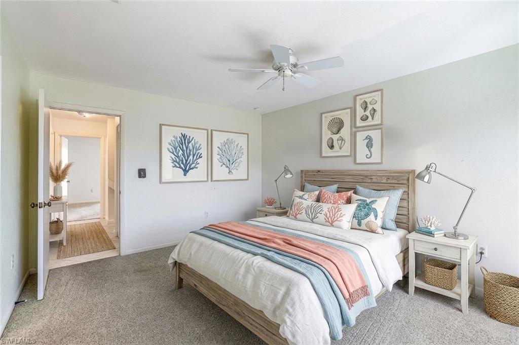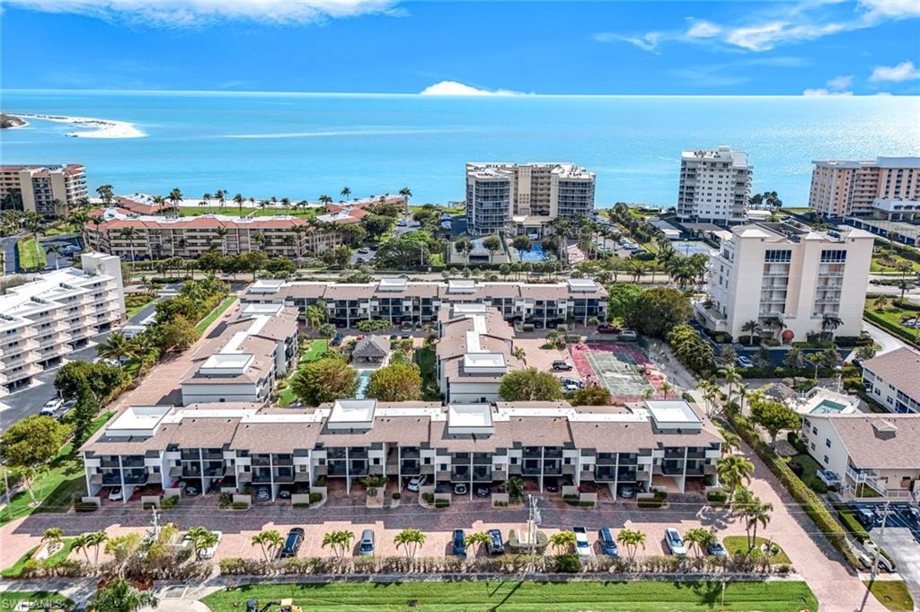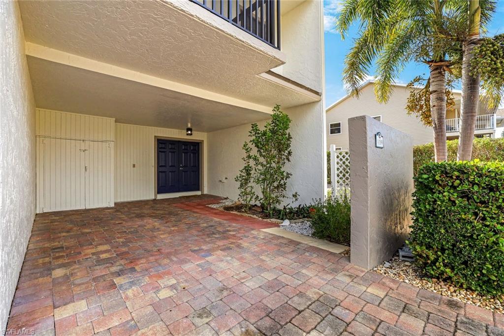 Welcome to Townhouse Square, a desirable community just a short walk to the white sandy beach of South Beach on Marco Island. This spacious and bright multi-level end-unit townhouse offers peace of mind with hurricane impact windows, sliders and doors throughout. The first floor features a covered carport, ample storage under the stairs and a large storage/workroom with slider leading outside. The second floor showcases an open living area with access to a screened lanai, an updated kitchen with light laminate flooring, KitchenAid stainless steel appliances, and wood cabinetry. A convenient half bath is located off the kitchen which is filled with natural light. The third floor features 2 bedrooms and 2 baths. Each bedroom also has their own private lanai. For convenience, the washer and dryer are also up on this floor. Community amenities include a pool and spa with chickee hut, tennis and pickleball and nicely maintained grounds. Best of all, enjoy the beach, a short walk away - no driving required, Welcome to paradise and your new home.