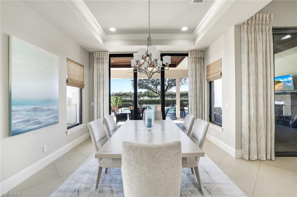 This impeccably maintained Fox Custom Builders residence in Talis Park offers refined luxury and timeless design in one of Naples’ premier golf communities. Professionally designed with a soft neutral palette and sophisticated finishes throughout, the home presents in exceptional condition and feels like new. Perfectly positioned along the 11th fairway of the Pete Dye and Greg Norman designed championship course, the 65 foot lot provides tranquil golf views and an ideal setting for indoor outdoor living. The chef’s kitchen features light custom cabinetry, natural gas cooking, Viking appliances, and an open layout that flows seamlessly into the great room and dining areas. Every space has been thoughtfully curated and meticulously cared for. The outdoor living area is designed for year round enjoyment, complete with a gas fireplace, summer kitchen, retractable electric screens, pool and spa, and fire features that create a warm evening ambiance. The covered lanai is enhanced with integrated sound and entertainment systems, ideal for hosting or relaxing in privacy. Additional highlights include a spacious three car garage and the rare opportunity to own a private golf cart within Talis Park. Offered turnkey, this residence allows for immediate enjoyment of the exceptional lifestyle Talis Park is known for. A true move in ready opportunity in one of Naples’ most sought after luxury golf communities.