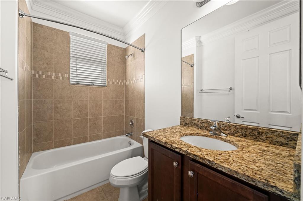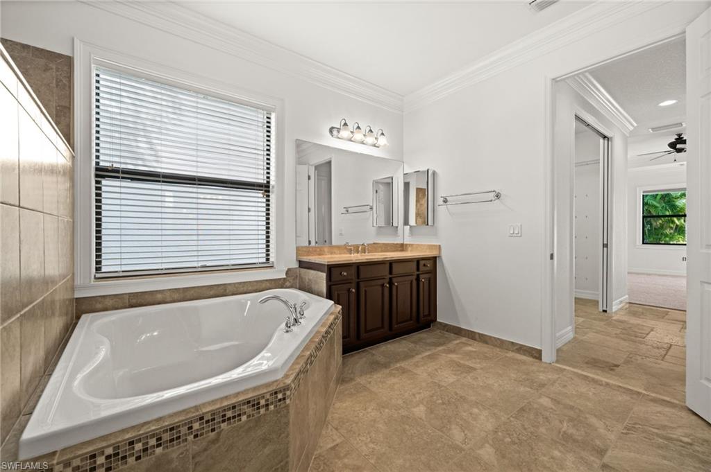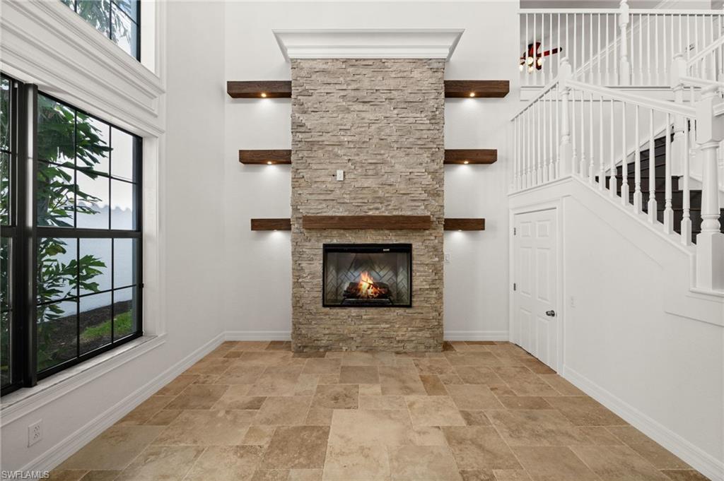 Welcome to an exceptional Riverstone residence where elegance meets modern luxury! This beautiful 5-bedroom, 4-Full Bathroom and 3-Car garage home showcases a thoughtfully curated layout designed for multi-generational living. Three refined living spaces include a grand salon with soaring ceilings, Custom Stone Fireplace and a built-in bar with wine fridge, cozy family room and a versatile upstairs loft perfect for an office or lounge area. From the moment you enter, you're greeted by an atmosphere of sophistication and impeccable attention to detail. The timeless kitchen features rich cabinetry, stainless-steel appliances, a striking granite waterfall island, abundant storage and a custom backsplash, all connected to the family room in a seamless open-floor concept ideal for entertaining and everyday living. Beautiful Travertine floors and Custom trim work reside throughout along with plantation shutters in the dining room. The main level provides a private Primary Suite and another guest bedroom each with their own full bathroom. Upstairs boasts three guest bedrooms with two full baths, new carpeting and engineered wood flooring in the loft area. The laundry room features front-loading Washer and Dryer complemented by built-in cabinets for added storage. Indulge in long lake views on the extended lanai with Travertine tiles for a tranquil outdoor retreat. Freshly painted interior and exterior plus new epoxy garage floors surrounded by lush, meticulous landscape add to the character of the home! Enjoy Resort-style living at Riverstone offering an extensive list of amenities including a 13,000 sq ft Club House, resort-style pool and spa, lap pool, children’s wading pool, state-of-the-art fitness center and yoga studio, 5 lighted Har-Tru tennis courts, Indoor and outdoor basketball and Pickleball courts and more! Located in the prime North Naples area near beaches, shopping and dining, this is the perfect home for comfort and convenience!