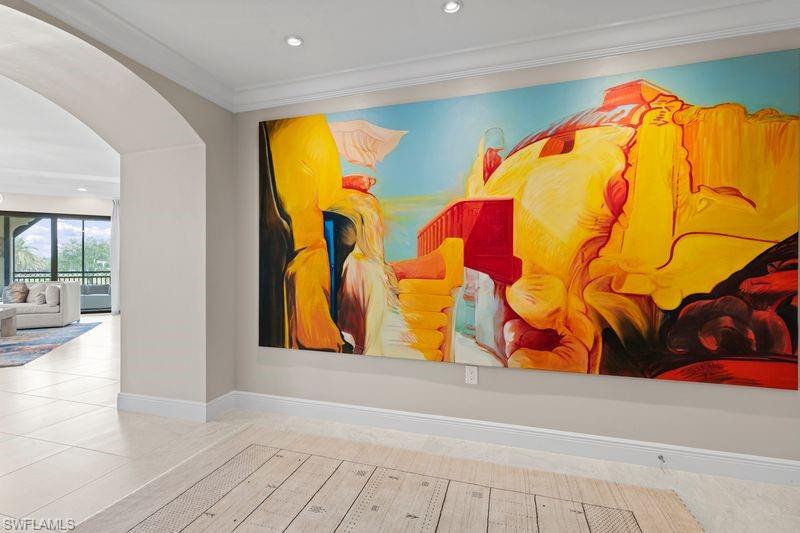 IMMEDIATE GOLF MEMBERSHIP!No Waitlist! Step into the pinnacle of modern luxury with this one-of-a-kind, penthouse-style residence in the prestigious Talis Park. Enjoy sweeping panoramic views of lush fairways, sparkling water, and a picturesque arched bridge that adds architectural character and timeless beauty. From sunrise to sunset, this breathtaking backdrop offers the perfect blend of tranquility and elegance! Perfectly positioned as the first building on the corner, this residence offers privacy rarely found; instead of looking directly into neighboring buildings, you’re surrounded by mature trees and natural greenery! Offered fully furnished and professionally designed with exquisite custom furnishings from Clive Daniel Home, this exceptional home showcases contemporary style and bold designer flair. Every detail has been thoughtfully curated, from the rich fabrics for window coverings to the designer-built-in entertainment center and Den/office cabinetry to handmade blown-glass pendant lighting. Designed to live like a private single-family home with ample space and a smart layout! The luxurious owner’s suite features custom organization systems by California Closets. Additional highlights include access to a 700 SF wrap-around screened-in lanai, Storm smart roll-down hurricane screen shutters, two ground-level garage spaces, a golf cart bay, and a private, climate-protected storage room. Residents enjoy access to Talis Park’s world-class amenities, including championship golf, resort-style pool, fitness center, tennis, pickleball, dining, and a vibrant social lifestyle—all within one of Naples’ most sought-after luxury communities.