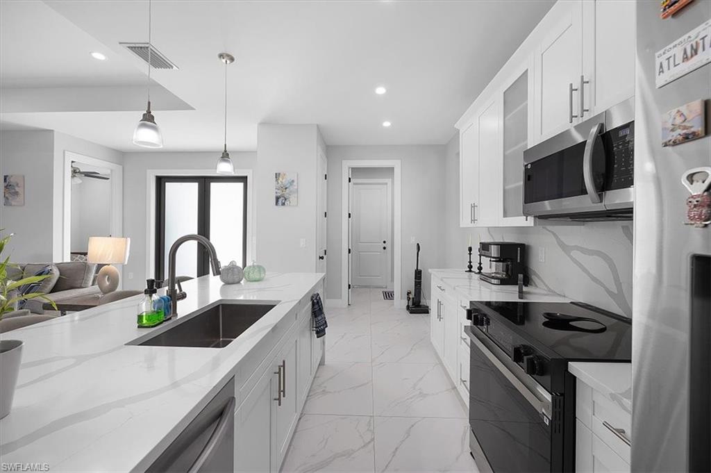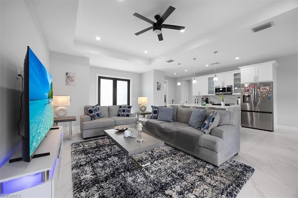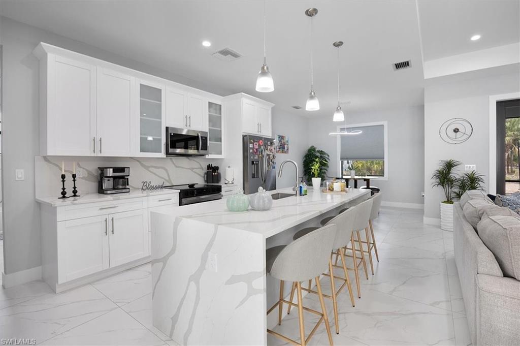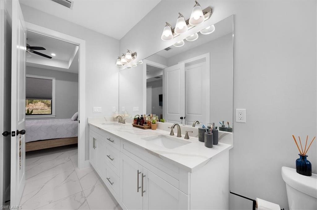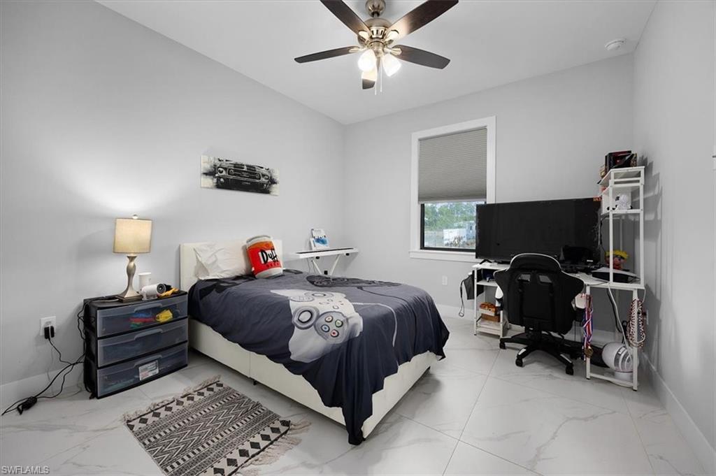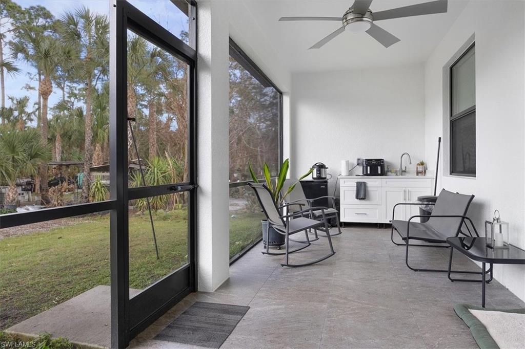 MODERN LIVING WITH INCOME POTENTIAL! Welcome to this beautifully built single-family home offering 3 bedrooms plus a den (easily used as a 4th bedroom or home office), 2 full bathrooms, and a 2-car attached garage. Situated on a cleared 100% upland lot, this property provides peace of mind and future flexibility — build a pool, workshop, or barn without the cost and complications of having to do wetland mitigation. Step inside to discover a modern open-concept design featuring a spacious kitchen with island, quartz countertops, and wood cabinetry throughout the kitchen and bathrooms. The home is completely tiled throughout, combining style with easy maintenance. Every room includes ceiling fans and modern lighting, while impact windows and doors offer safety, energy efficiency, and storm protection. Both bathrooms are thoughtfully designed offering both options of a shower or tub, and the home features neutral colors throughout along with all window blinds included, making it truly move-in ready. Enjoy outdoor living at its finest on the large screened lanai with an outdoor summer kitchen, perfect for entertaining year-round. A whole house reverse osmosis filtration system completes this property with comprehensive water purification on every tap, showers and appliances. The extended paved driveway provides ample parking for multiple vehicles. A standout feature of this property is the additional setup ideal for rental income or multigenerational living, allowing side-by-side occupancy while maintaining privacy and separation from the main home. Located in Golden Gate Estates, surrounded by similarly newer homes, you’ll enjoy the tranquility of owning land while still being just a short drive from the city center, shopping, dining, and the stunning Southwest Florida beaches. Experience the best of Naples-area living with space, privacy, and convenience. Don’t miss this opportunity to own a versatile, new construction home in one of the area’s most desirable acreage communities.