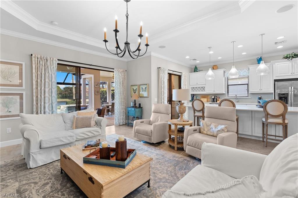 Experience the perfect blend of comfort, elegance, and effortless Florida living in this beautifully furnished residence, ideally positioned on a quiet cul-de-sac with breathtaking long lake views. Designed with an open, airy layout, this warm and inviting home offers 3 bedrooms plus a den, 3 full baths, and seamless indoor-outdoor living perfect for both everyday enjoyment and entertaining. The spacious great room flows into an inviting kitchen featuring a large center island, stainless steel appliances, natural gas cooking, and abundant cabinetry, creating a true gathering space at the heart of the home. Expansive sliding glass doors open to an exceptional lanai where the outdoor lifestyle takes center stage. Enjoy a resort-style setting complete with a sparkling pool, spa, and a newly added outdoor kitchen — all framed by tranquil water views and generous covered lounging areas ideal for dining, relaxing, or entertaining year-round. Additional highlights include a premium Sonos sound system, stylish furnishings throughout, and thoughtful upgrades that enhance both comfort and convenience. With the CDD paid in full, this property offers a rare opportunity to own a move-in-ready, furnished home that captures the essence of luxury waterfront living in a private and serene setting. Residents enjoy the world-class amenities of Fiddler’s Creek, including the 54,000-square-foot Club & Spa with two on-site restaurants, resort pools, fitness center, and tennis, pickleball, and bocce courts. Optional golf, beach, and boating memberships complete the luxury lifestyle. Ideally located just minutes from Marco Island’s beaches and only 15 minutes to downtown Naples and Fifth Avenue South.