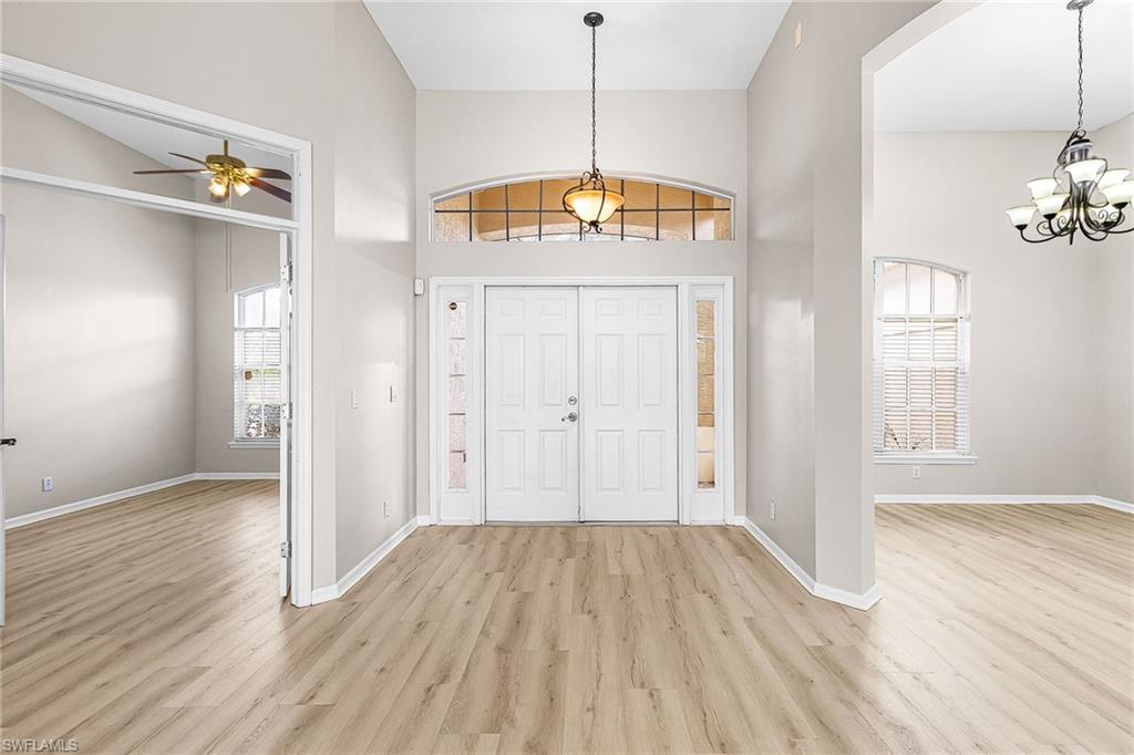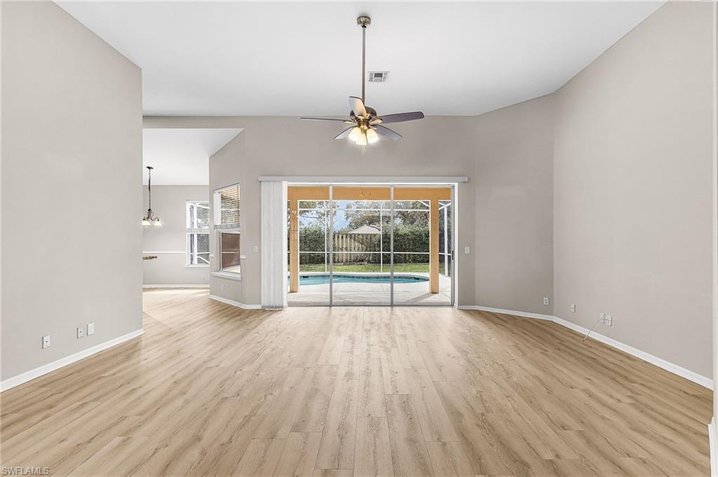 Charming Single Family Pool home in Pebblebrook Lakes for sale! - a gated, family friendly, community featuring a clubhouse, community pool, fitness center, tennis, and basketball courts, with very affordable HOA fee, 4 bedrooms, 2 bathrooms with 2 car attached garage. Total 2747sqft with 2276 sqft of living area. This home features terrific, heated family pool, privacy fence around back yard. Eat in kitchen is open to the view of the pool, granite countertop. stainless steel appliances, new flooring, roof replaced in 2018. Master bathroom with direct access to the lanai / pool, has a soaking tub, standalone shower with dual sinks. You can walk to the shopping center and one of the best middle schools in the Naples is right next door. Located in FEMA X Zone—no flood insurance required, Best price for the pool home in the Pebblebrook lakes.