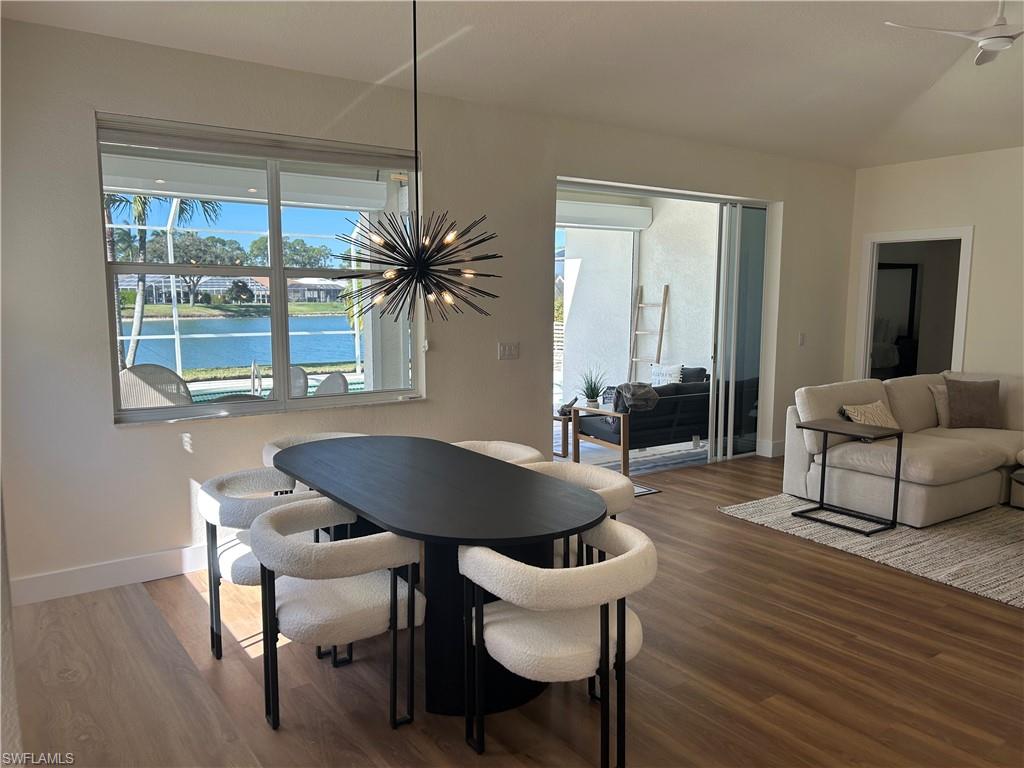One of Naples best kept secrets-The Community of Maplewood! This 3-bedroom-2 bath-2 car garage-lakefront, pool home. As soon as you drive up you will notice the curb appeal with the impeccable landscaping design and plush lawn. Enter to the open floor plan, high ceilings and panoramic view over the lake, you are captured by the peaceful scene. NEW flooring, doors, trim, lighting and fans. NEW kitchen complete with white shaker cabinetry, floating shelves, quartz counters, designer backsplash & Maytag stainless appliances. Roof 2020, HVAC 2022, hurricane garage door 2024 and exterior painted 2025, accordian storm shutters all around and electric shutters on the lanai. This home is a must see. LOW HOA Fees - $550/qtr - include WiFi & Cable & Clubhouse. No flood zone! Conveniently located near shopping, dining and only a few miles to the beach and 5th Ave this home is the perfect blend of tranquility and accessibility.