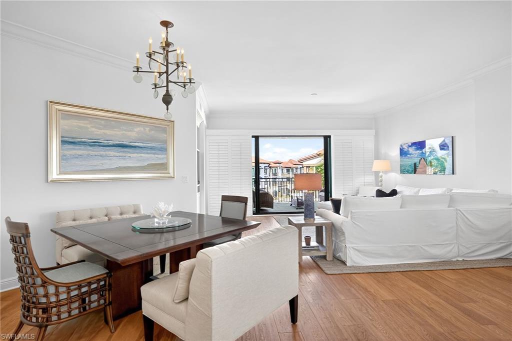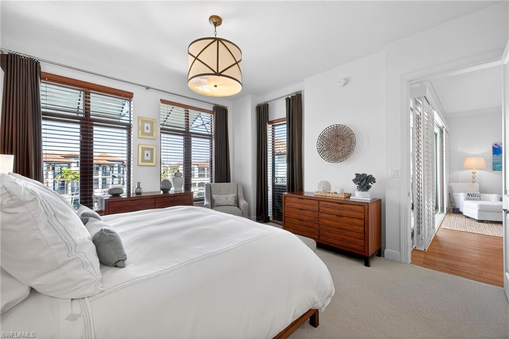 Commanding an exceptional waterfront position overlooking the vibrant Naples Bay Resort & Marina, this sophisticated 3 bedroom, 3.5 bathroom residence offers a rare opportunity to enjoy the finest in coastal luxury just moments from downtown Naples. From sunrise over the shimmering bay to golden sunsets reflecting across the marina, this remarkable corner residence captures breathtaking water views from 4 private terraces, creating a seamless connection to the surrounding waterfront setting. The thoughtfully designed interior is bathed in natural light, with expansive glass doors framing panoramic bay and marina vistas from nearly every living space. Full home water filtration system. At the heart of the home, a chef’s kitchen showcases premium Sub-Zero and Wolf appliances, a gas range, custom cabinetry, and a wet bar—ideal for hosting gatherings or enjoying quiet evenings with a stunning waterfront backdrop. Beach shuttle to downtown with full service chairs , towels and umbrellas. Each bedroom offers its own private retreat, while the spacious terraces provide inviting outdoor living areas ideal for morning coffee, al fresco dining, or simply taking in the tranquil beauty of Naples Bay. 2-car covered parking plus a lovely and private community pool for residents. Residents also enjoy exclusive access to the world-class Naples Bay Club, featuring a 15,000-square-foot private clubhouse, resort-style pool, poolside dining at the Blue Water Grill, a state-of-the-art fitness center with Topgolf Swing Suite, spa, tennis facilities, and full-service marina amenities. A short walk, bike ride or golf cart ride to downtown Naples renowned worldwide for its fine dining, boutiques, galleries, and white sandy beaches. This exceptional waterfront residence offers an unparalleled lifestyle defined by luxury, convenience, and the unmistakable beauty of Naples’ iconic waterfront.