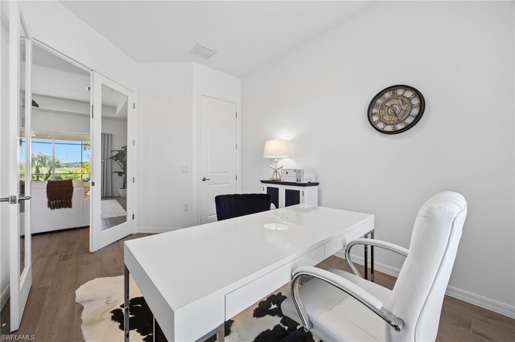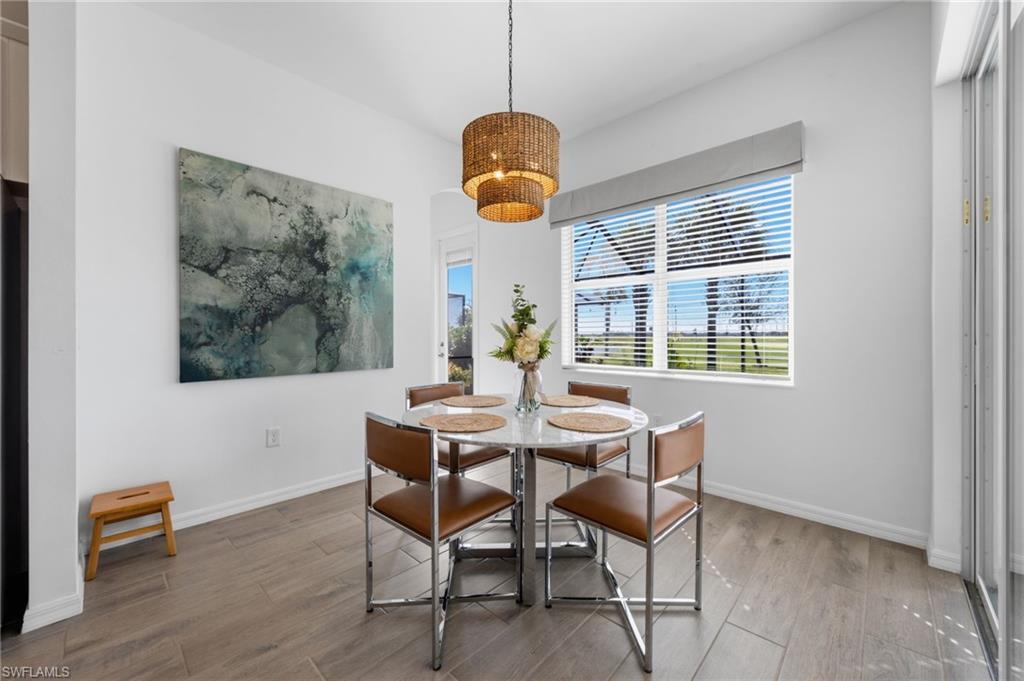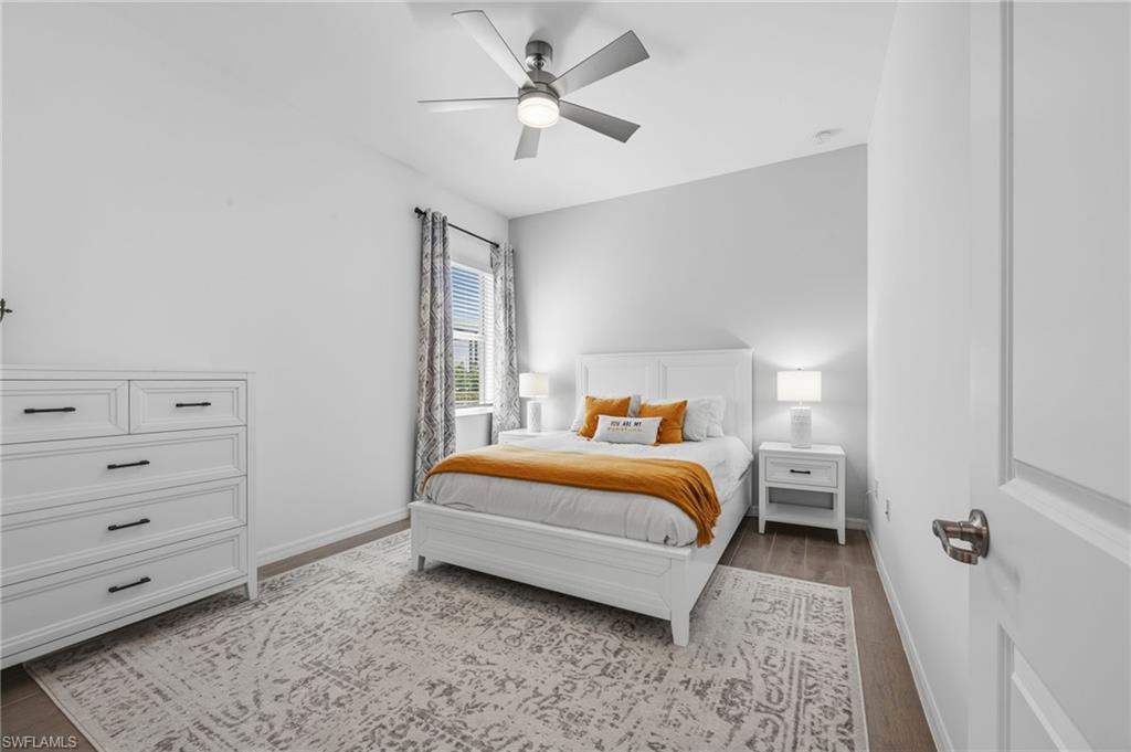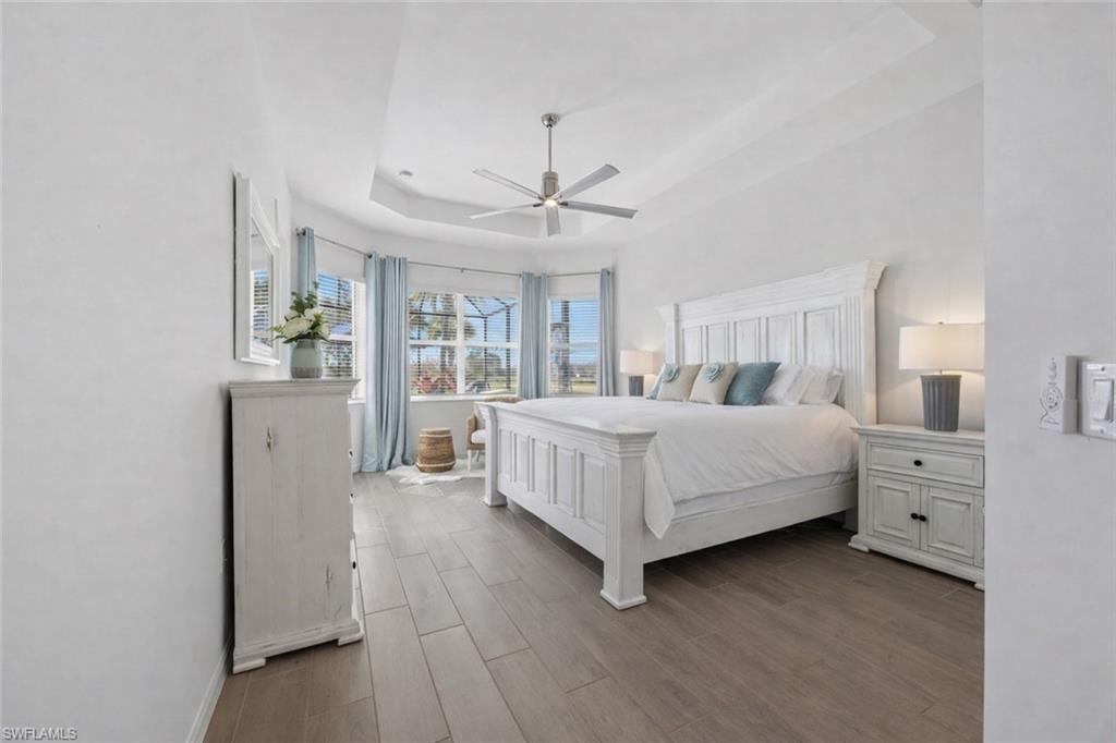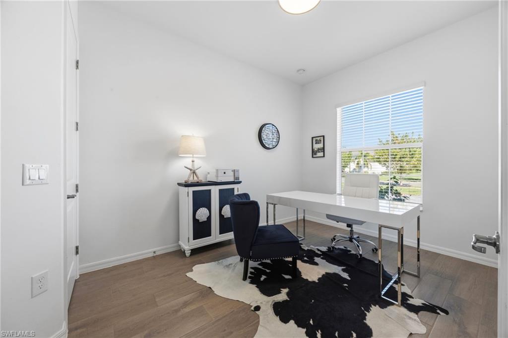 Turnkey living, endless sunsets and bundled golf await at this 2023 Napoli II estate home in the National Golf & Country Club at Ave Maria. Offered fully furnished, it even comes with a brand-new golf cart — all you need are your clubs! The split-bedroom floor plan provides 2,395 sqft with three bedrooms, a den and 2.5 baths. An open-concept kitchen with over-sized island anchors the home and is equipped with high-end appliances and three refrigerators for entertaining. A formal dining area and breakfast nook flow into the great room and out onto a screened lanai. Set on a quiet cul-de-sac overlooking the 16th fairway, the residence enjoys southwest exposure and is just seconds from the Pro Shop. The lanai hosts a heated pool and spa, an electric storm screen and a Blackstone and gas grill. The owner’s suite features a huge walk-in closet and a spa-like bath with separate soaking tub and shower. Plank tile floors, neutral palate, laundry room with sink, and cabana bath add comfort and practicality, while a surge protector on the electric panel safeguards your appliances & electronics. The oversized three-car garage has space for your vehicles and the included golf cart. Outside, pavered drives and manicured landscaping complete the curb appeal. As part of the National Golf & Country Club, homeowners enjoy a Gordon Lewis–designed 18-hole championship golf course, with deeded membership included. The resort campus offers a zero-entry pool, state-of-the-art fitness center with sauna, full-service spa, tennis and pickleball courts, and a clubhouse with indoor and outdoor dining. Nearby Naples and the town center of Ave Maria expand your dining and shopping options.