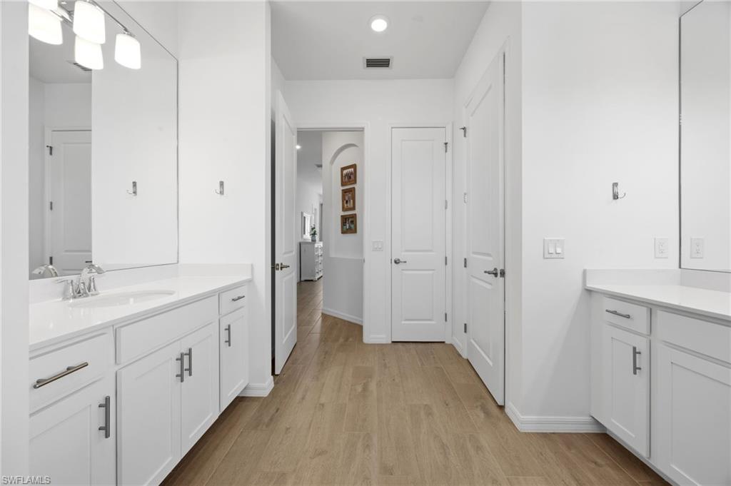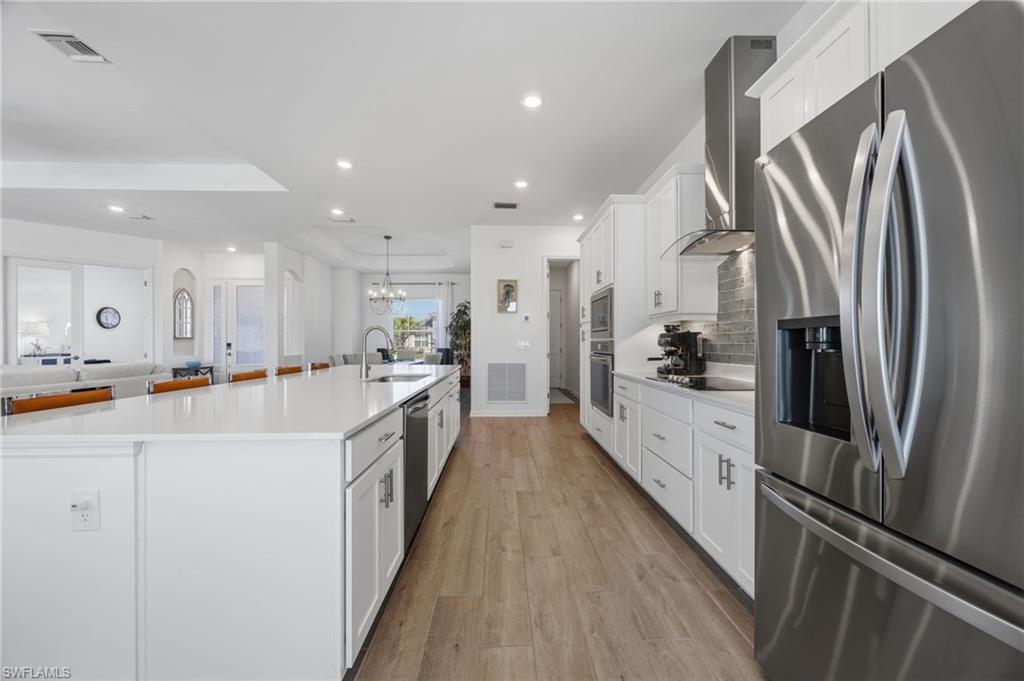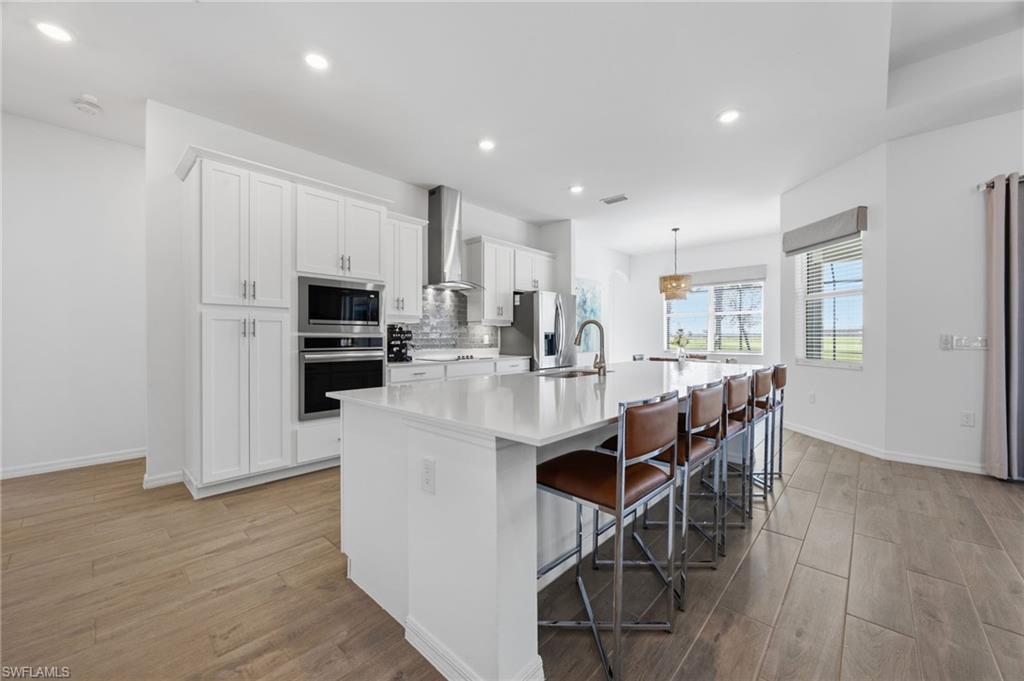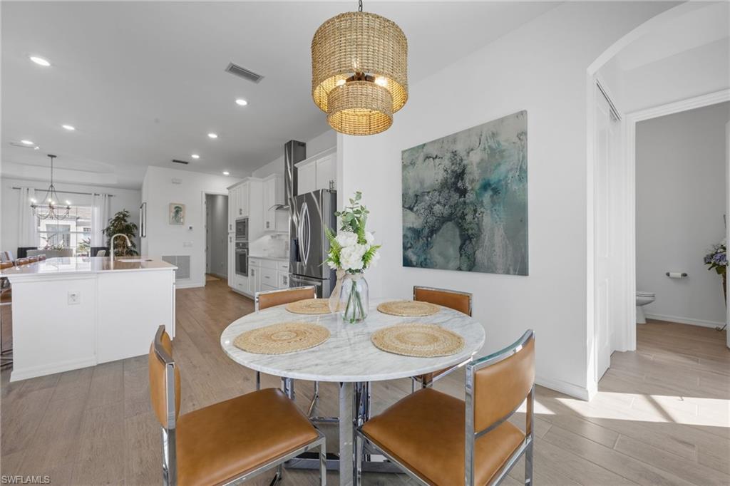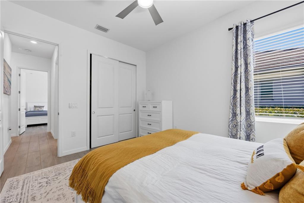 Turnkey living, endless sunsets and bundled golf await at this 2023 Napoli II estate home in the National Golf & Country Club at Ave Maria. Offered fully furnished, it even comes with a brand-new golf cart — all you need are your clubs! The split-bedroom floor plan provides 2,395 sqft with three bedrooms, a den and 2.5 baths. An open-concept kitchen with over-sized island anchors the home and is equipped with high-end appliances and three refrigerators for entertaining. A formal dining area and breakfast nook flow into the great room and out onto a screened lanai. Set on a quiet cul-de-sac overlooking the 16th fairway, the residence enjoys southwest exposure and is just seconds from the Pro Shop. The lanai hosts a heated pool and spa, an electric storm screen and a Blackstone and gas grill. The owner’s suite features a huge walk-in closet and a spa-like bath with separate soaking tub and shower. Plank tile floors, neutral palate, laundry room with sink, and cabana bath add comfort and practicality, while a surge protector on the electric panel safeguards your appliances & electronics. The oversized three-car garage has space for your vehicles and the included golf cart. Outside, pavered drives and manicured landscaping complete the curb appeal. As part of the National Golf & Country Club, homeowners enjoy a Gordon Lewis–designed 18-hole championship golf course, with deeded membership included. The resort campus offers a zero-entry pool, state-of-the-art fitness center with sauna, full-service spa, tennis and pickleball courts, and a clubhouse with indoor and outdoor dining. Nearby Naples and the town center of Ave Maria expand your dining and shopping options.